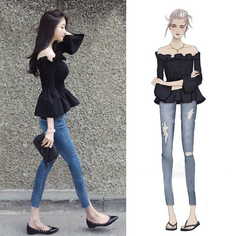 --------------------- 春夏一字领露肩荷叶边喇叭袖松紧收腰漏肩雪纺衫显瘦一字肩上衣女 【原售价】41.1元 【现售价】41.1元 【推荐理由】
