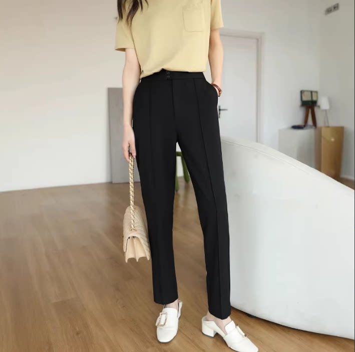 淘宝04/17Z专柜王牌版型!不皱不变形垂感羊毛四面弹九分高腰西裤0992