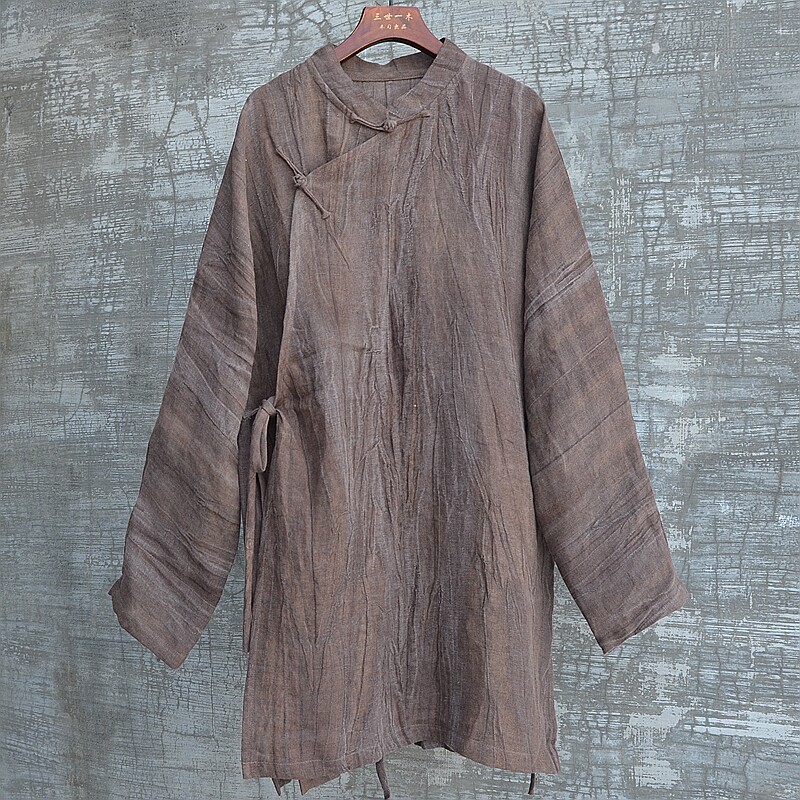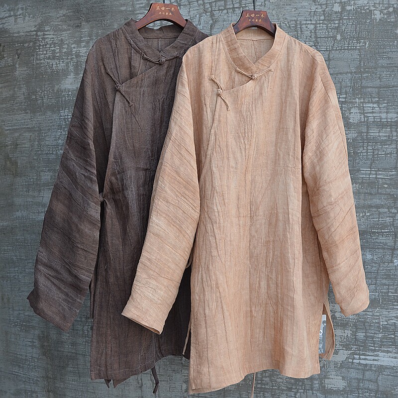 淘宝女装新中式立领亚麻衬衫女长袖宽松透气休闲文艺复古上衣