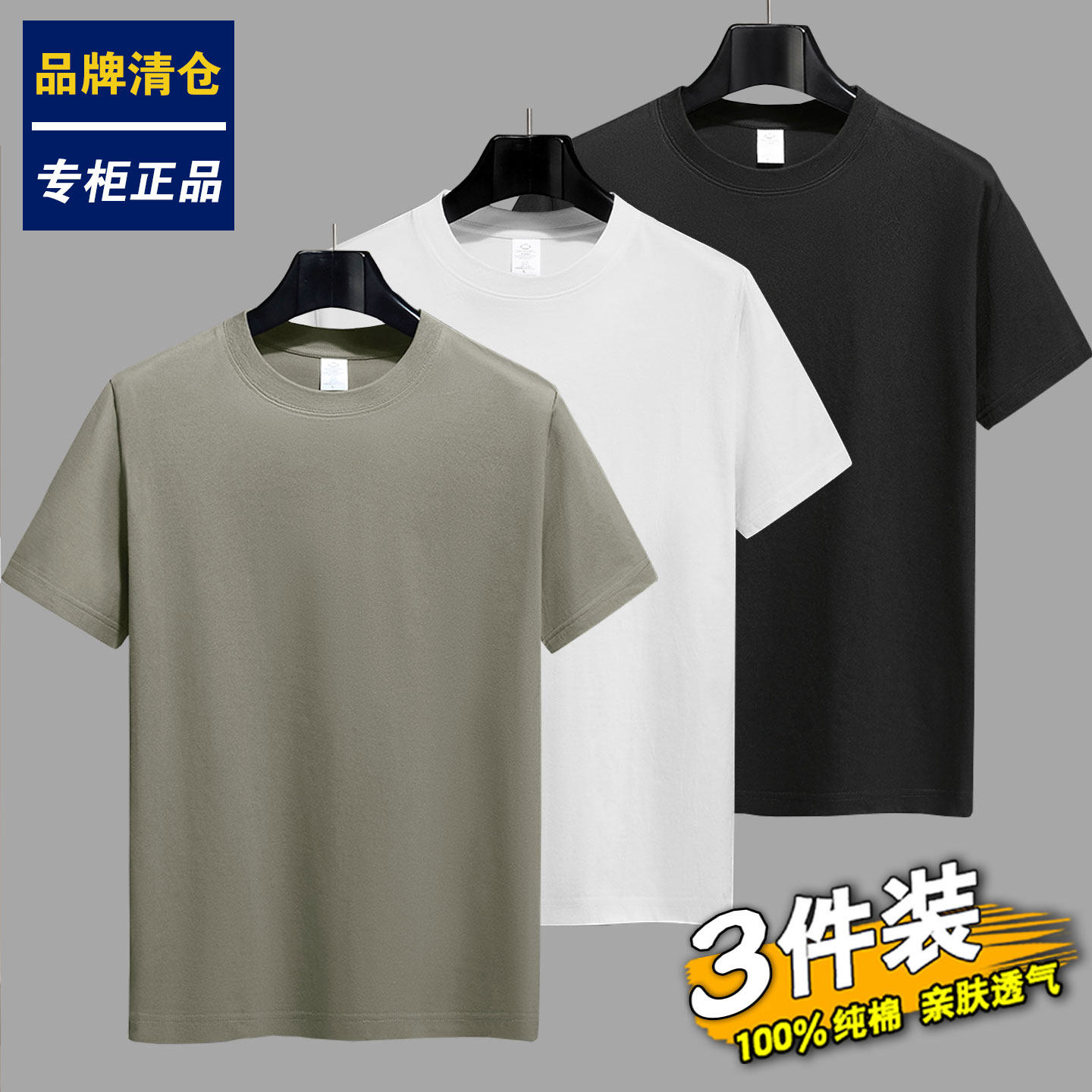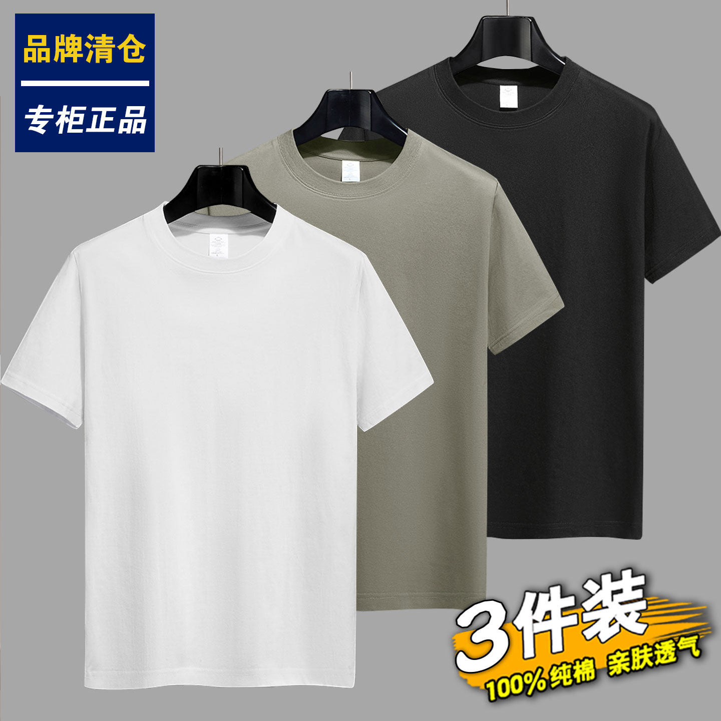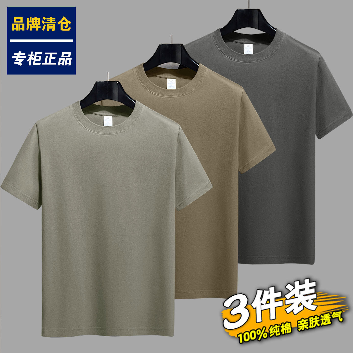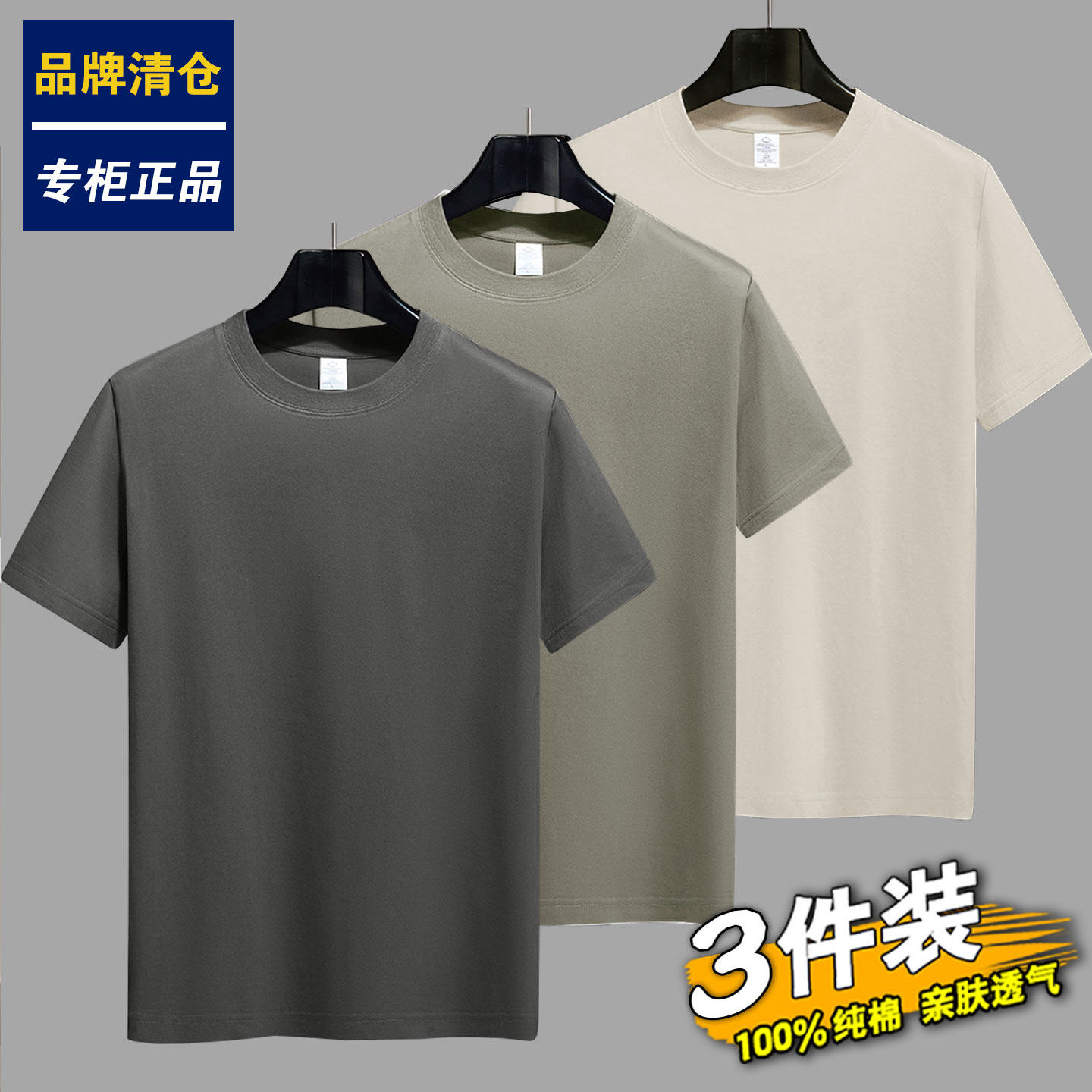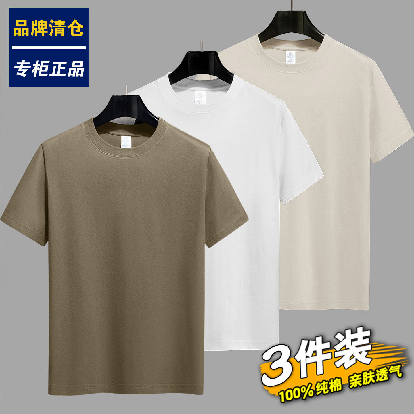 淘宝海蓝品牌新疆长绒纯棉短袖t恤男圆领宽松纯色体恤全棉半袖上衣服