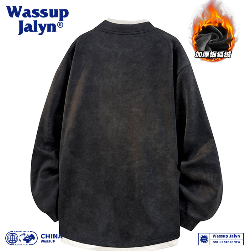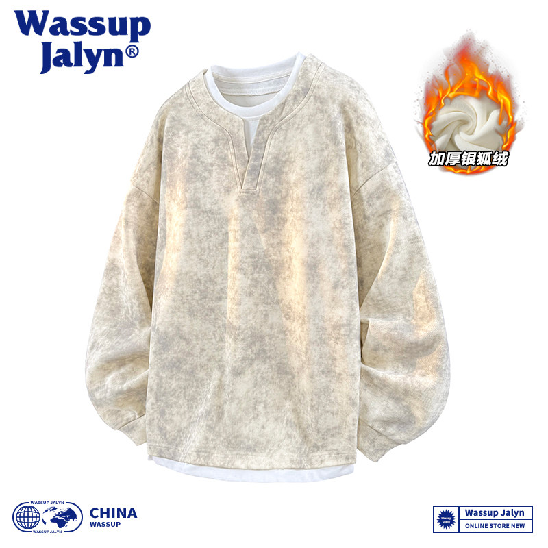 WASSUP JALYNN扎染假两件圆领卫衣男士秋冬加绒美式宽松休闲上衣