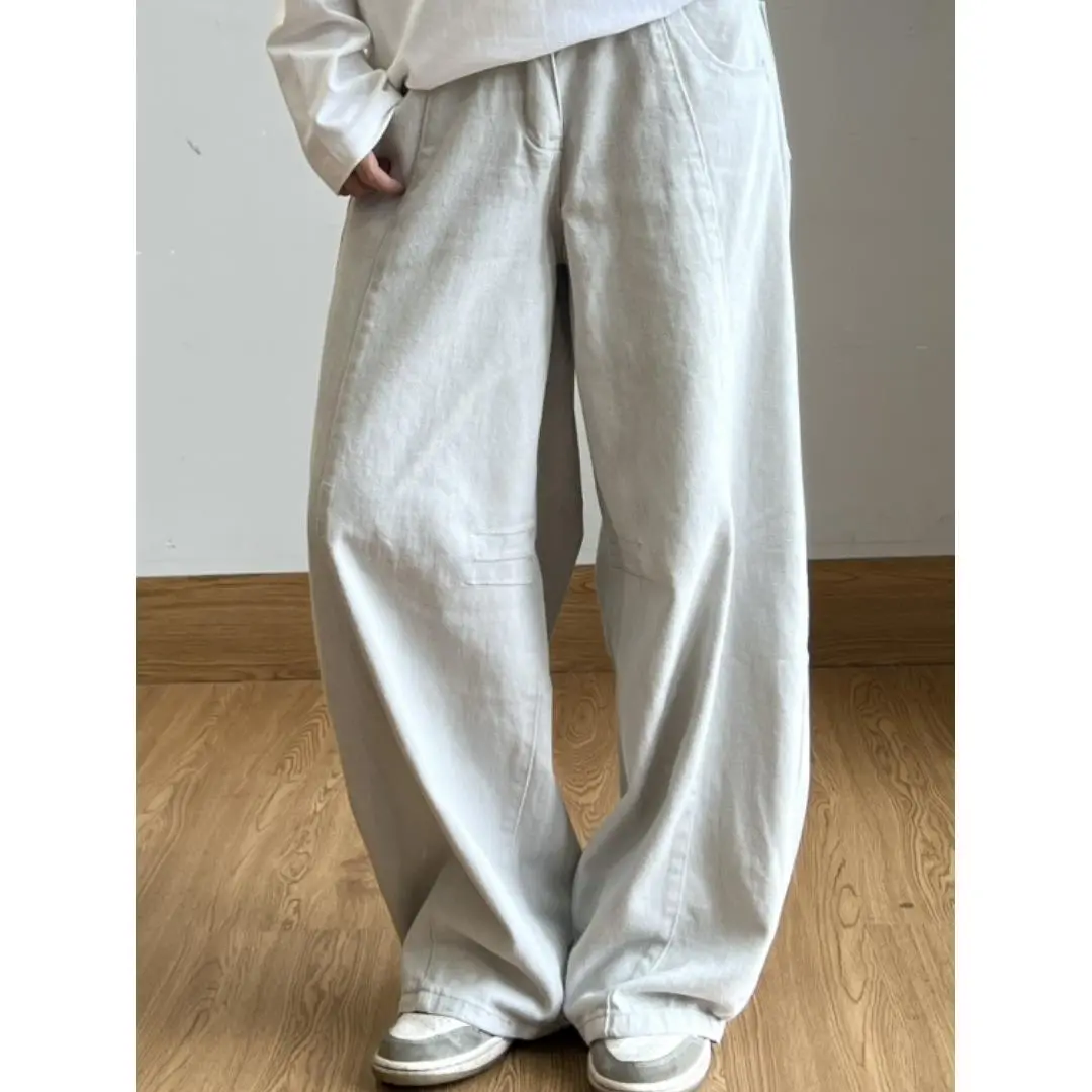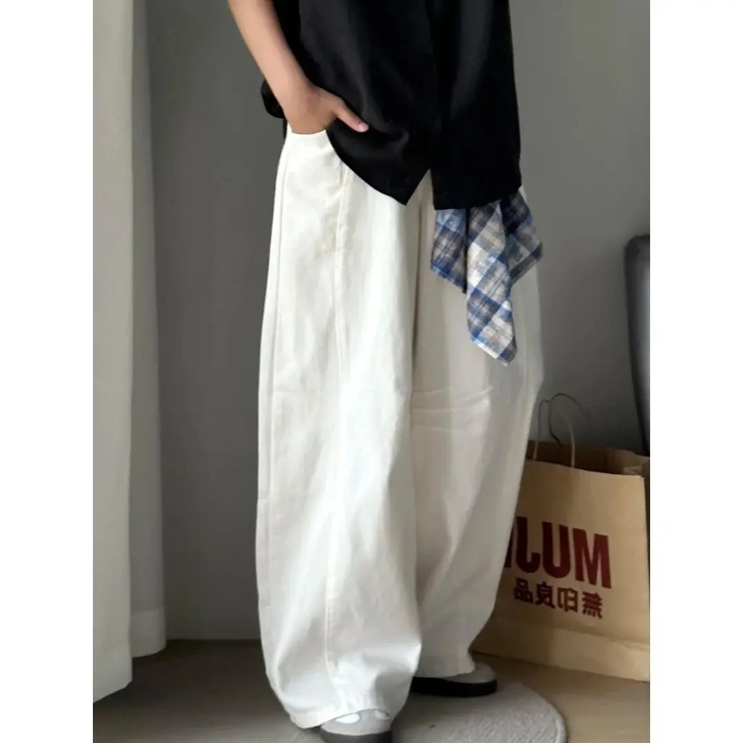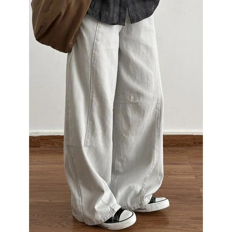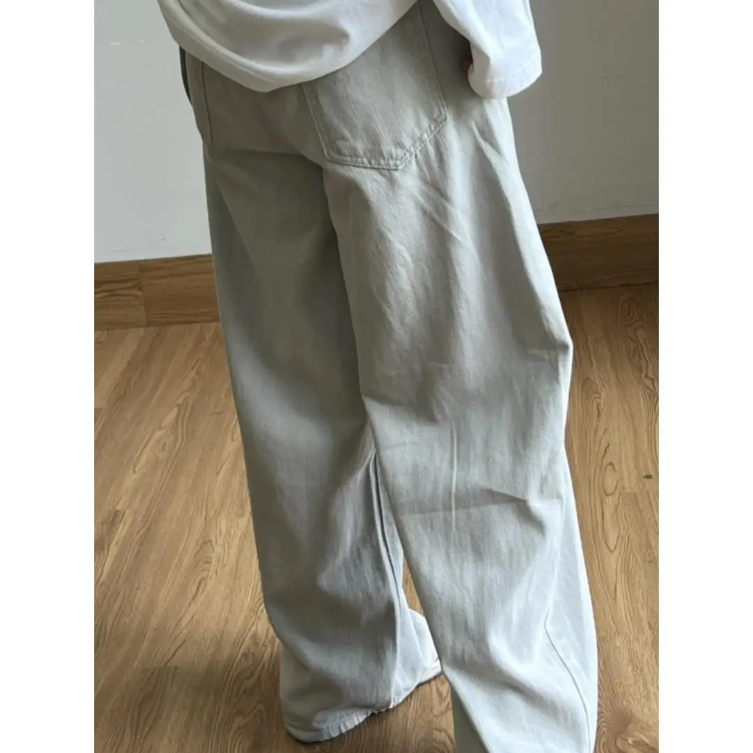 美式阔腿方巾绣牛仔裤男女秋季新款覆古直筒阔腿长裤水洗宽松裤子