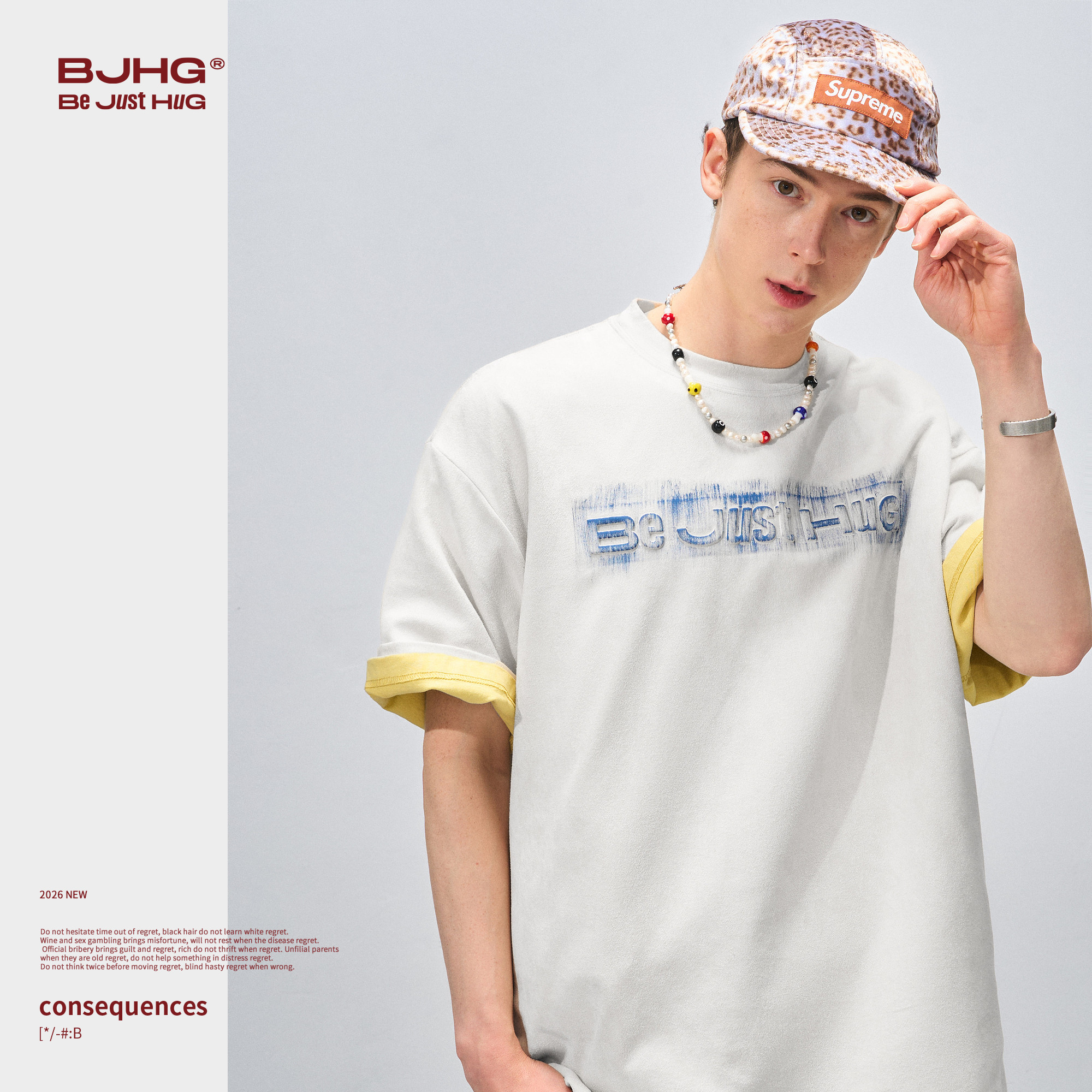 --------------------- BJHG不计后果字母涂鸦短袖t恤男款夏季潮美式复古环保麂皮绒半袖 【原售价】139元 【现售价】119元 【推荐理由】