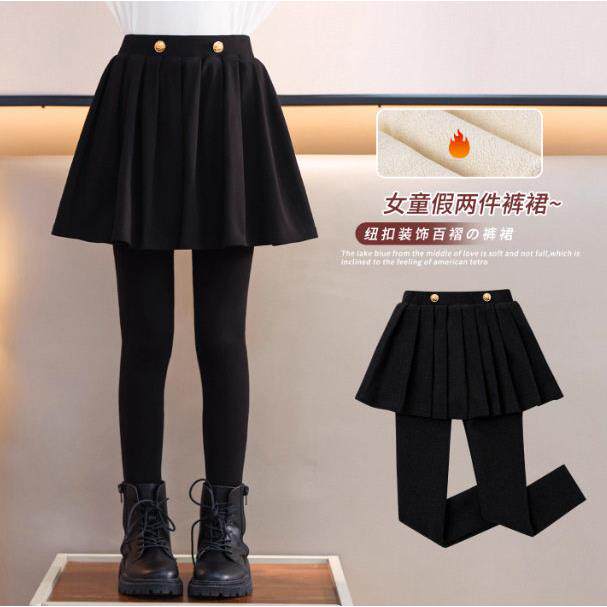 女童假两件百褶裙打底裤2026春秋冬新款加绒厚保暖洋气一体绒裤裙