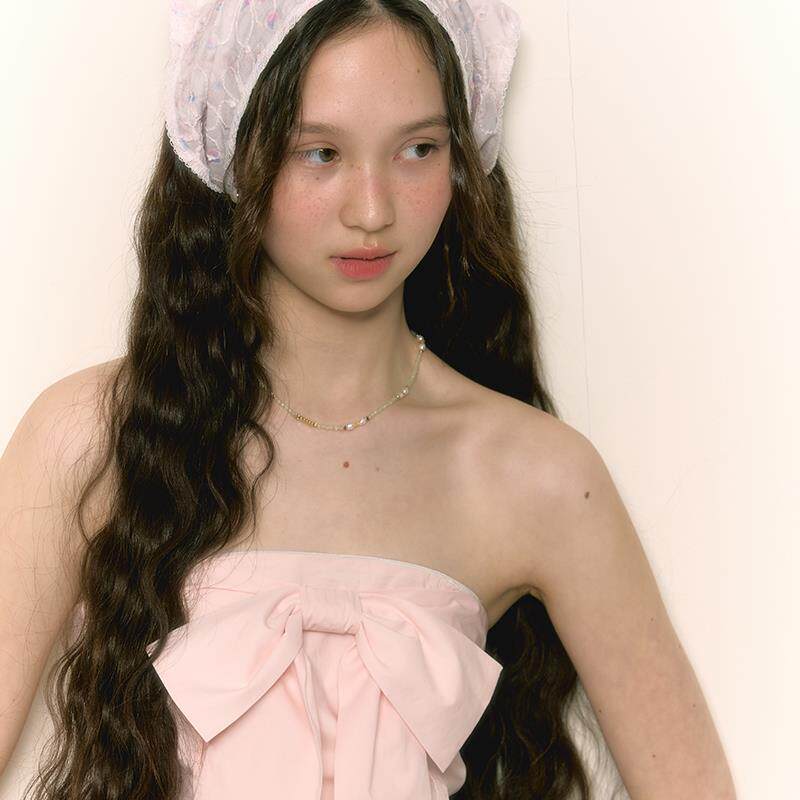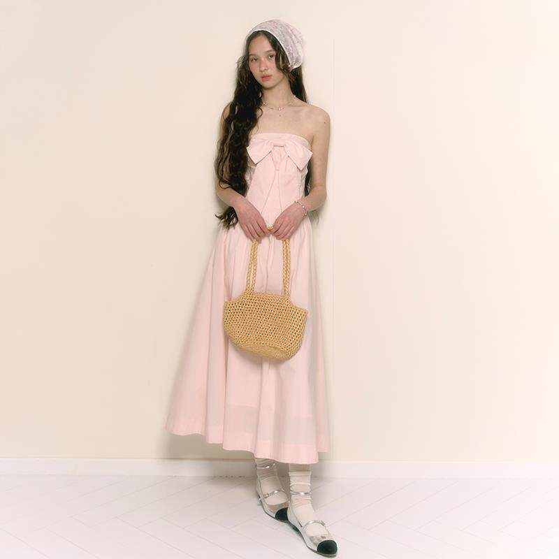 淘宝chummygirls 原创新款法式复古优雅蝴蝶结抹胸收腰中长款连衣裙女