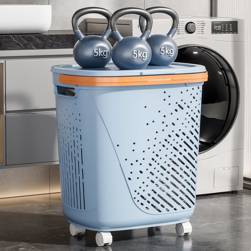 家用脏衣篮宿舍大收n纳带盖洗衣蓝浴室卫生间塑料脏衣篓手提洗衣