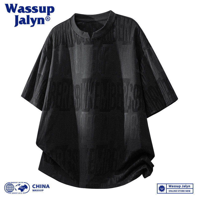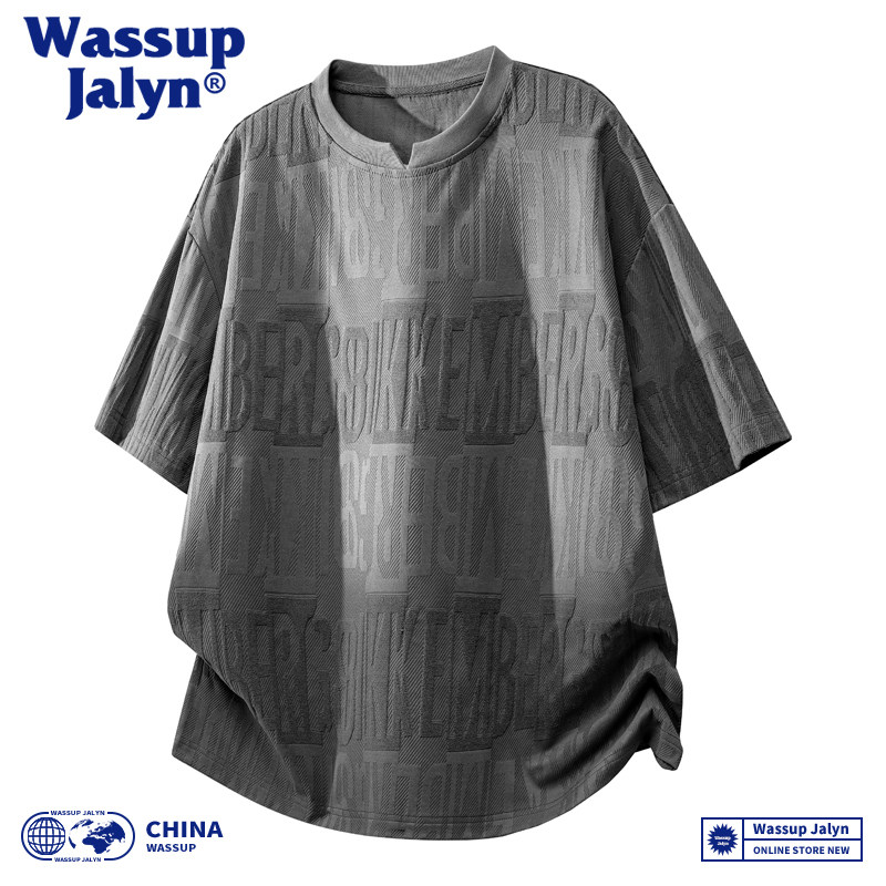 WASSUP JALYN美式提花短袖圆领冰丝T恤男宽松宽松袖休闲字母上衣