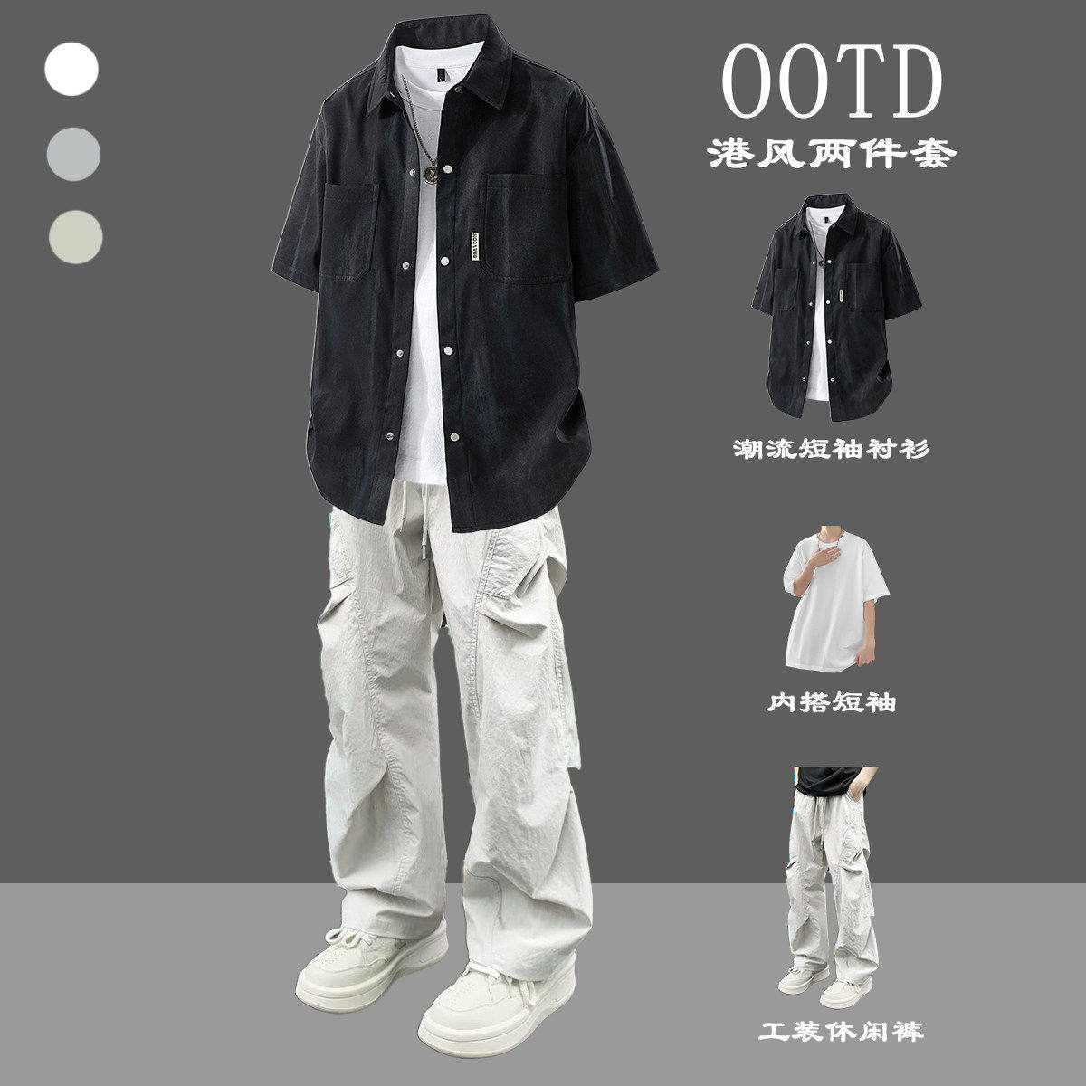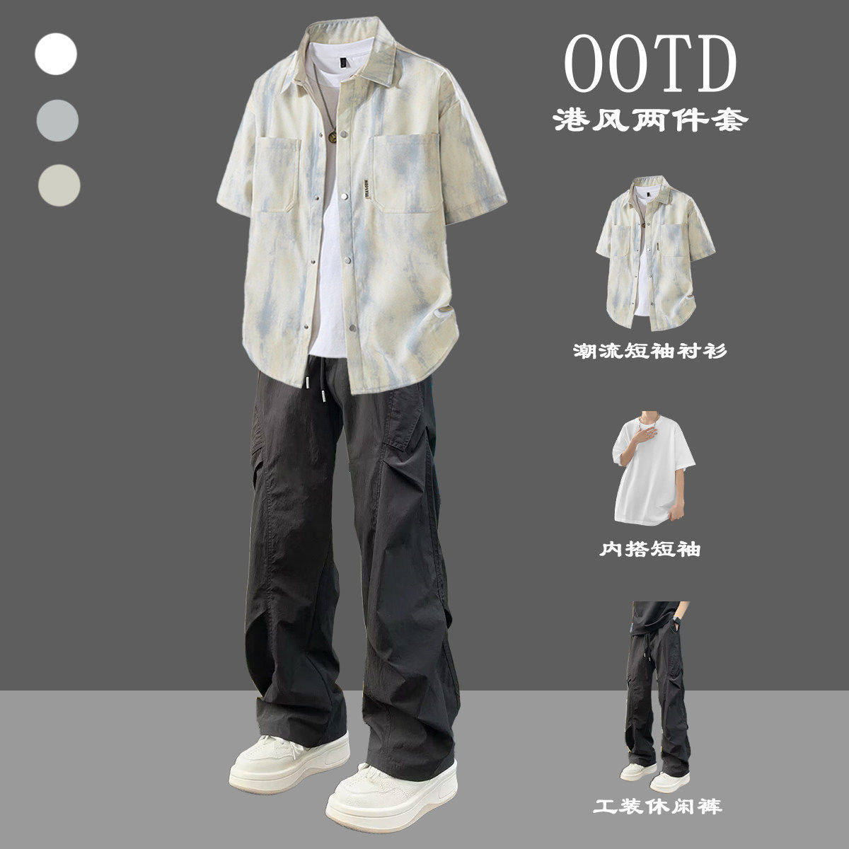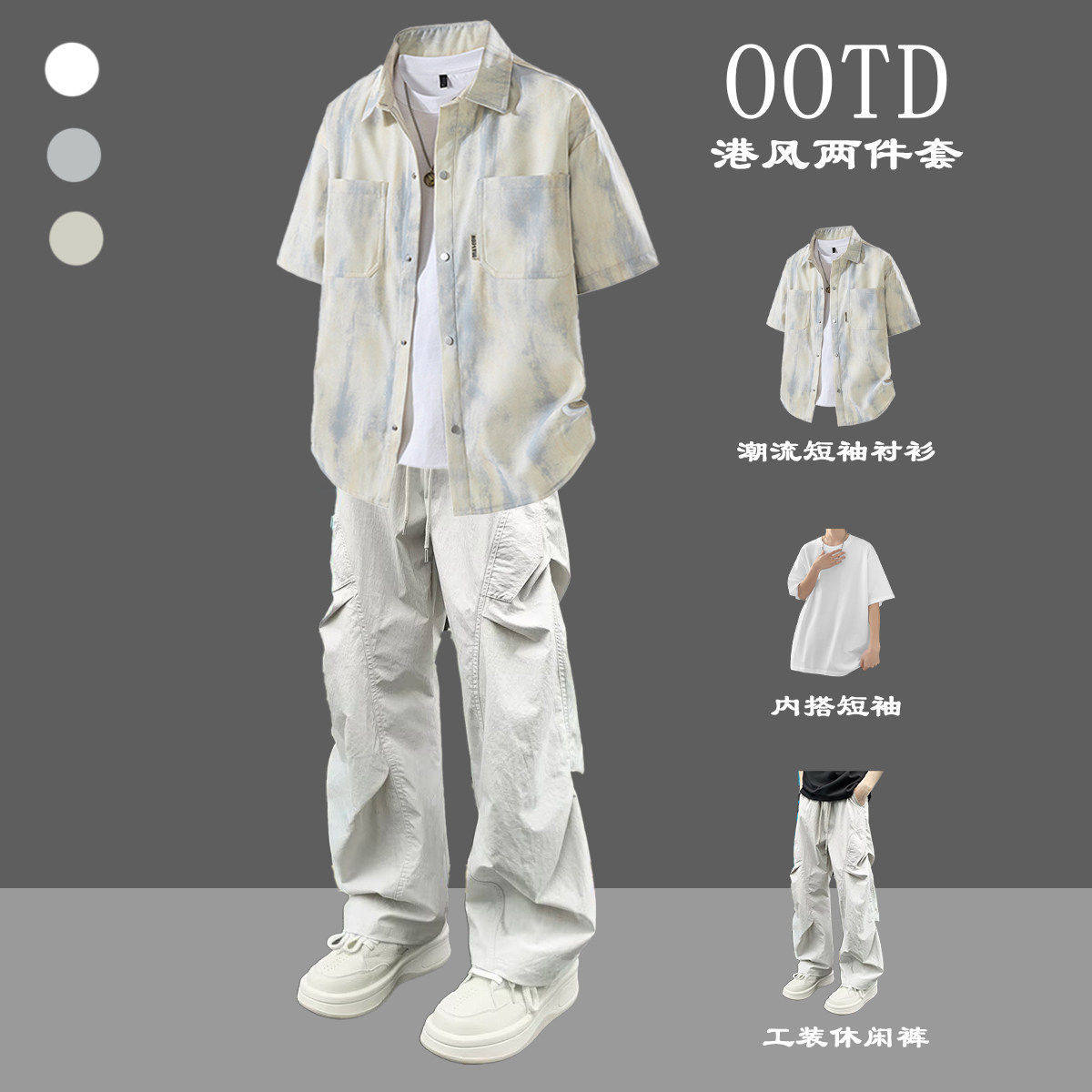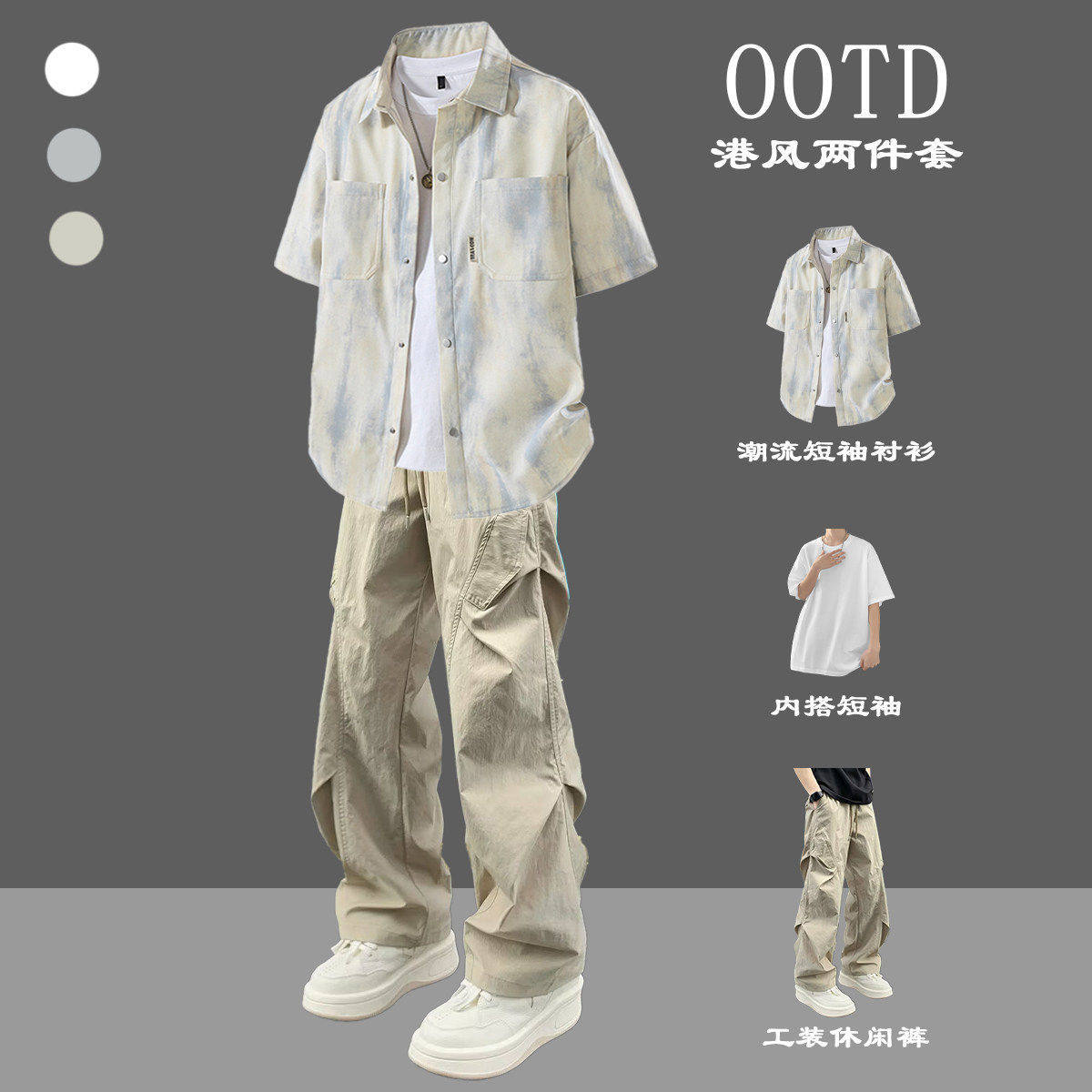 --------------------- BENTIDEA 扎染美式短袖衬衫男生夏季薄款潮牌套装痞帅三件套 【原售价】180元 【现售价】99元 【推荐理由】