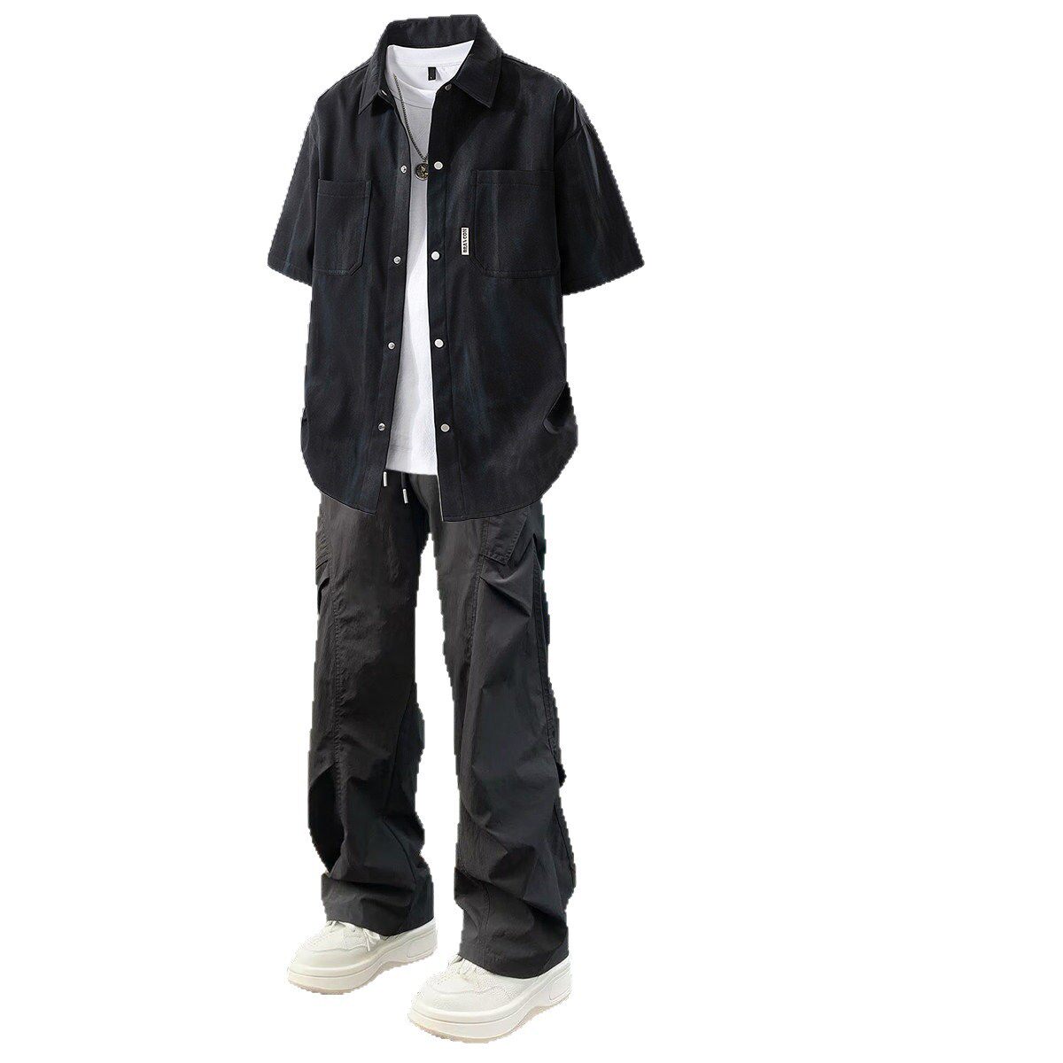 BENTIDEA 扎染美式短袖衬衫男生夏季薄款潮牌套装痞帅三件套