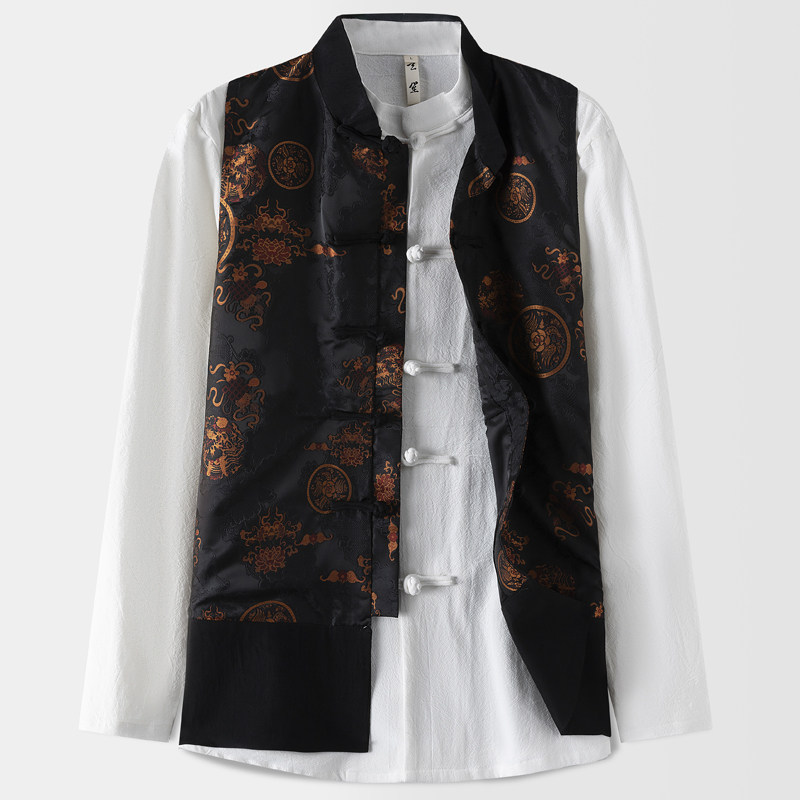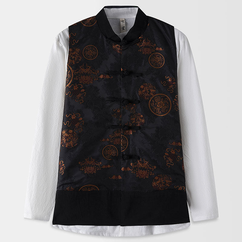 --------------------- 秋季唐装男宽松无袖坎肩男士宽松国潮提花背心马褂中国风男装马甲 【原售价】458元 【现售价】227元 【推荐理由】