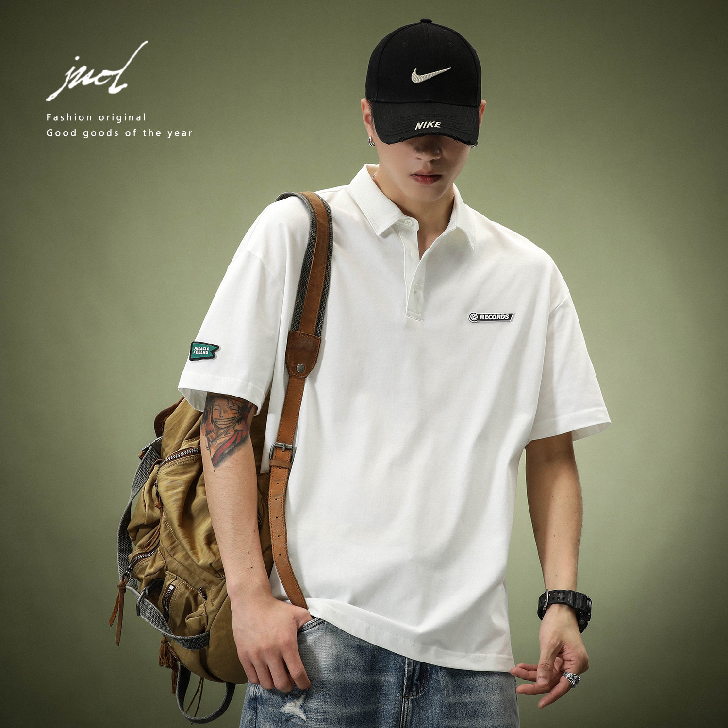 --------------------- 重磅白色250g纯棉短袖POLO衫男夏季宽松青年保罗美式设计感T恤潮 【原售价】198元 【现售价】89.1元 【推荐理由】