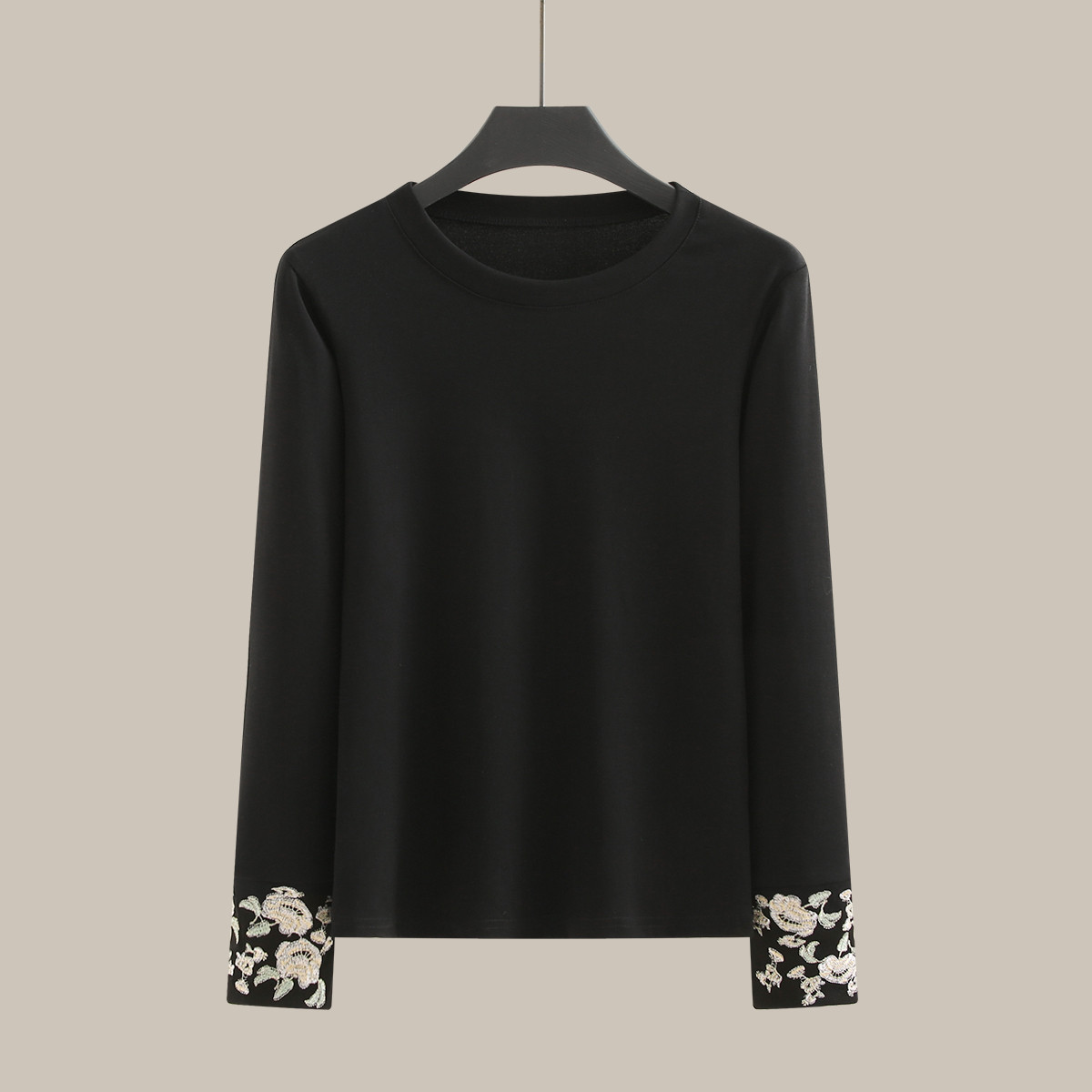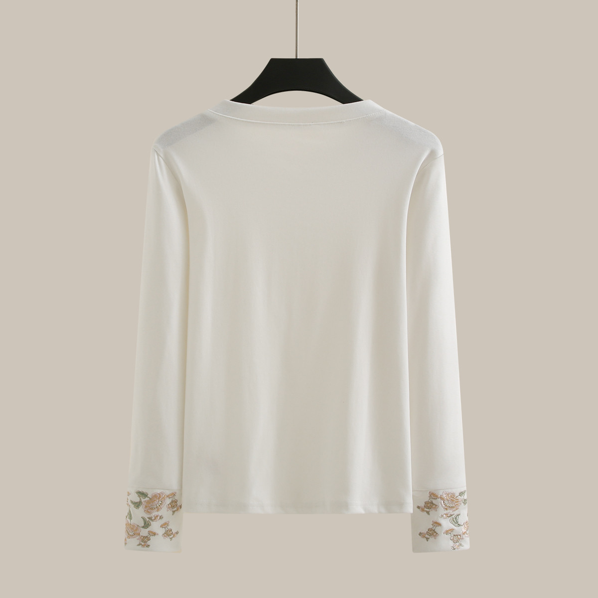 2025早春女装国风新中式白色刺绣拼接长袖纯棉T恤内搭打底衫上衣