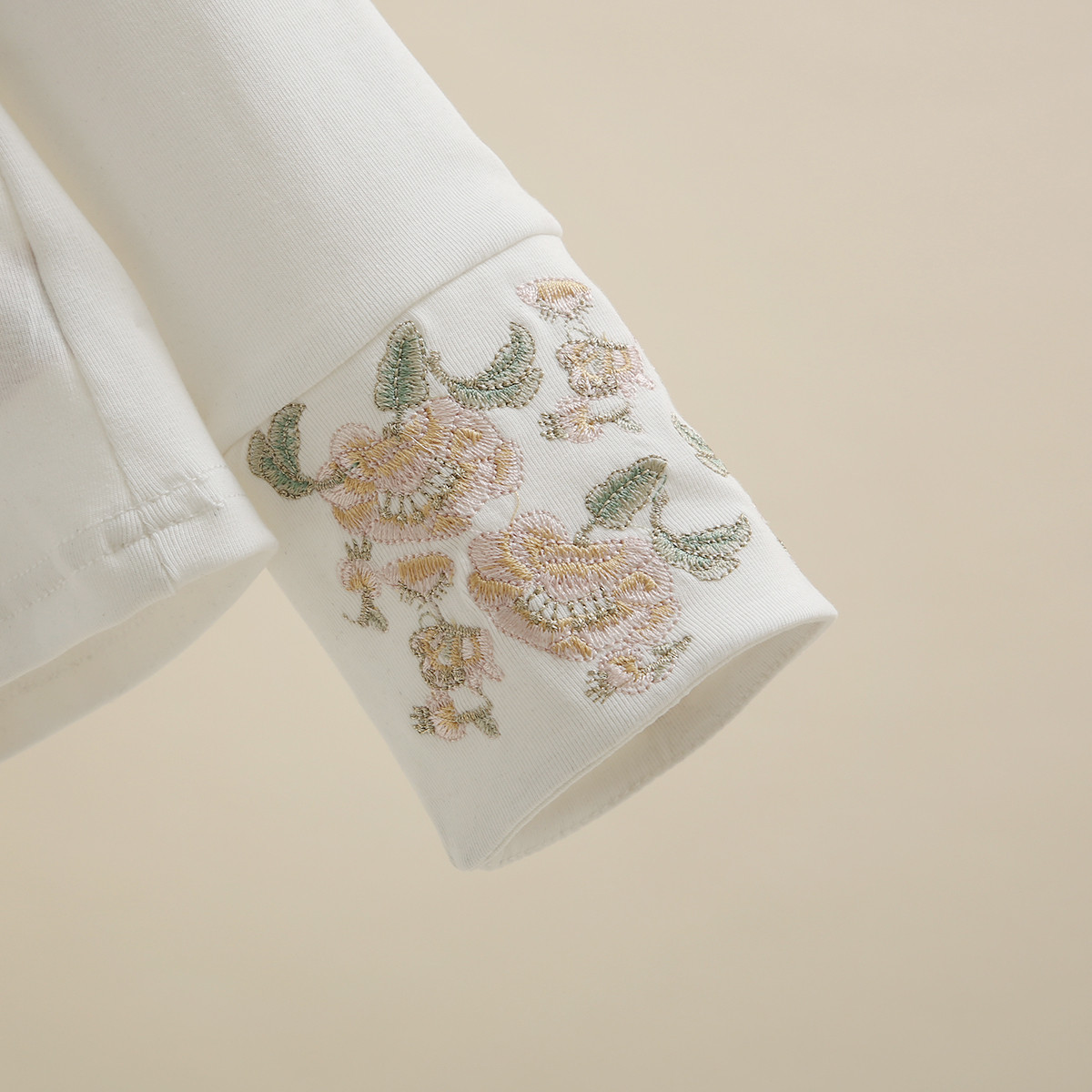--------------------- 2025早春女装国风新中式白色刺绣拼接长袖纯棉T恤内搭打底衫上衣 【原售价】49.9元 【现售价】49.9元 【推荐理由】