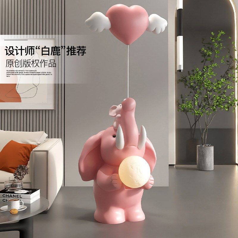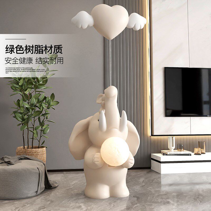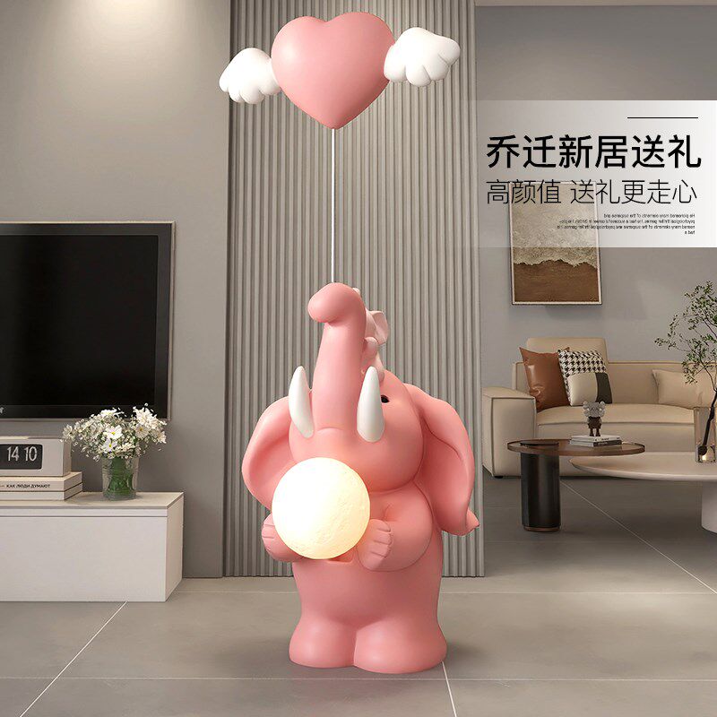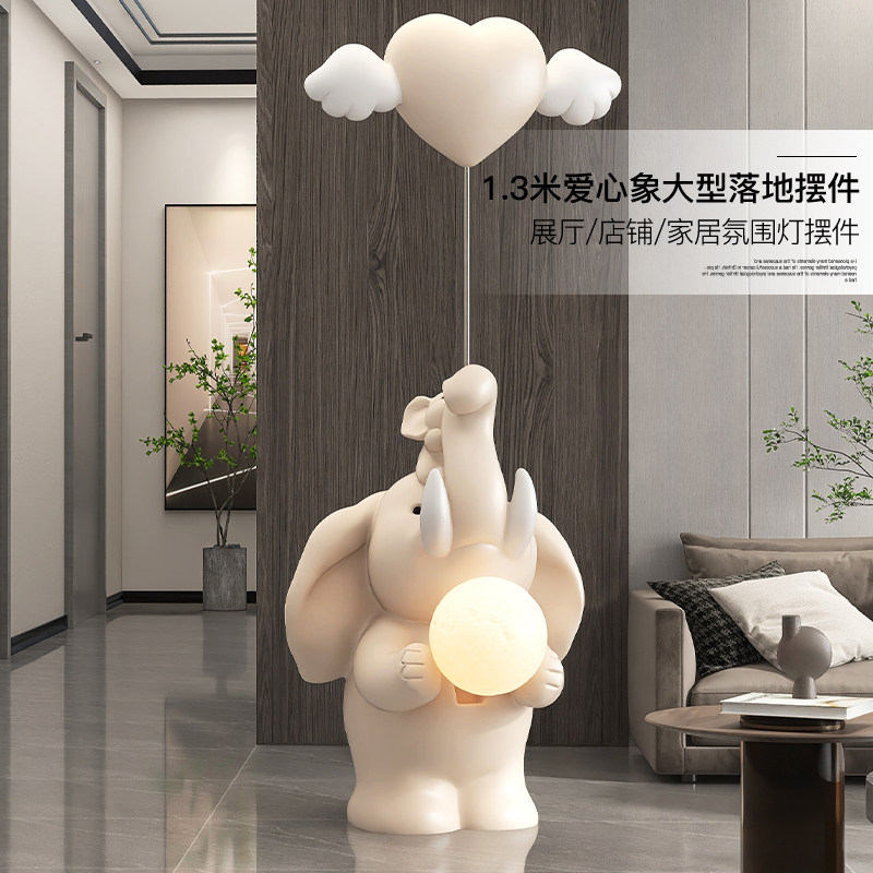 大象落地摆件奶油风客厅玄关电视柜沙发旁家居装饰灯乔迁新居礼物