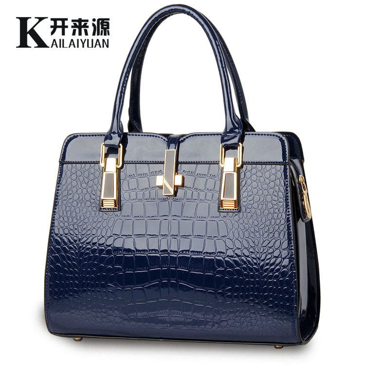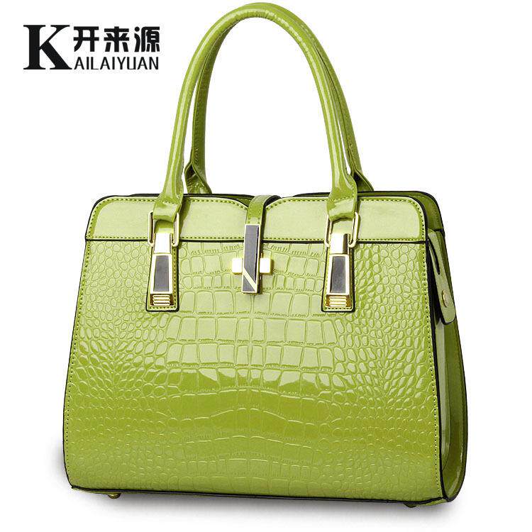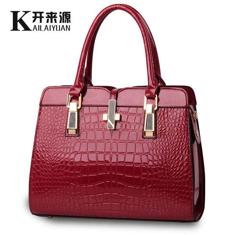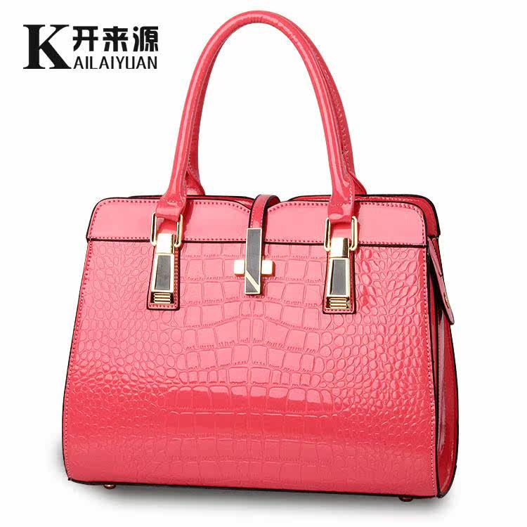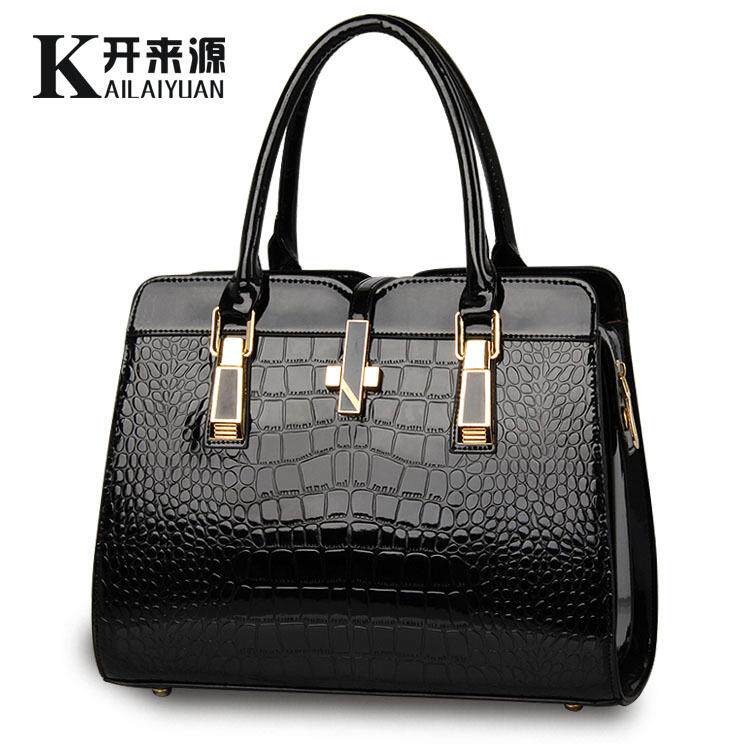 包包女2018新款经典有型亮漆皮鳄鱼纹时尚单肩手提女包欧美女士
