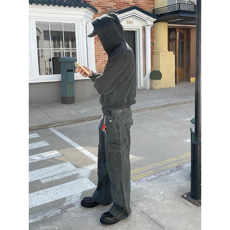 CMF多口袋机能工装裤男潮牌宽松夏季美式复古做旧vibe微喇长裤子