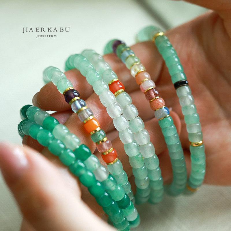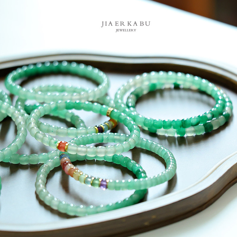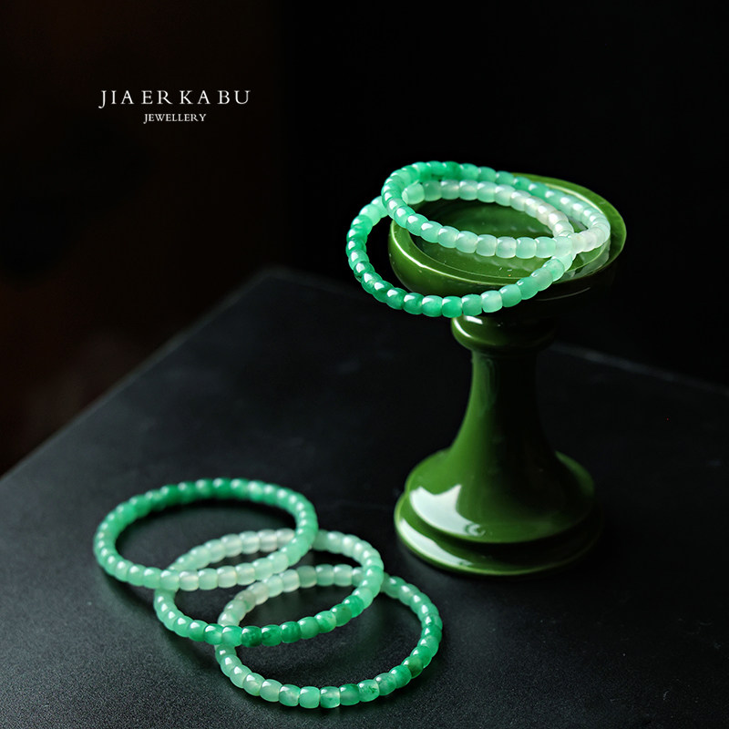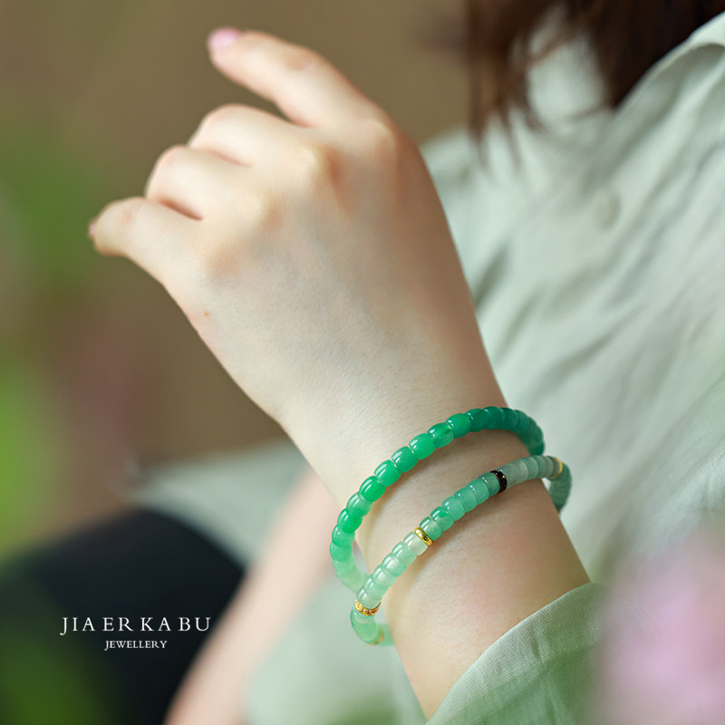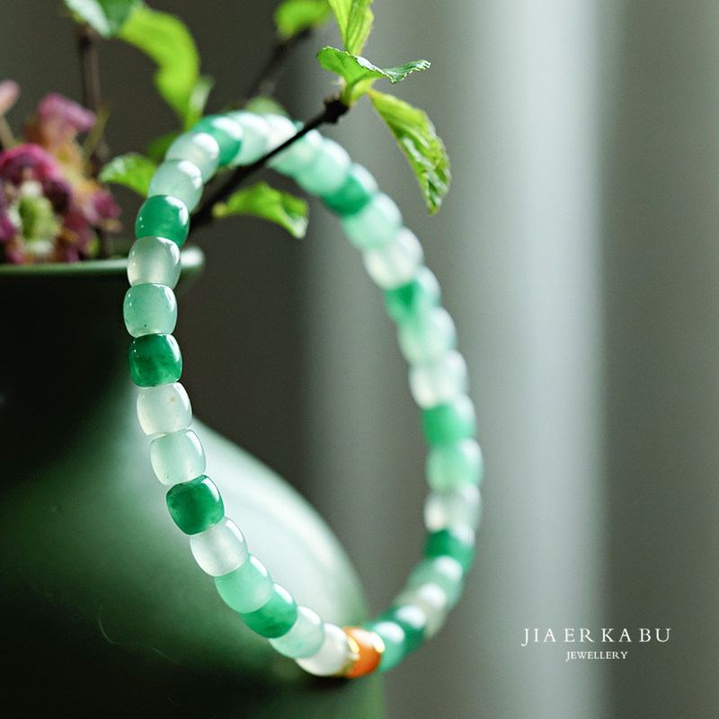淘宝清屿·意境美天然独龙玉冰种飘花阳绿渐变直切桶珠珠串手链女