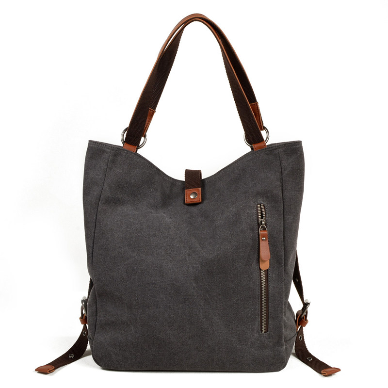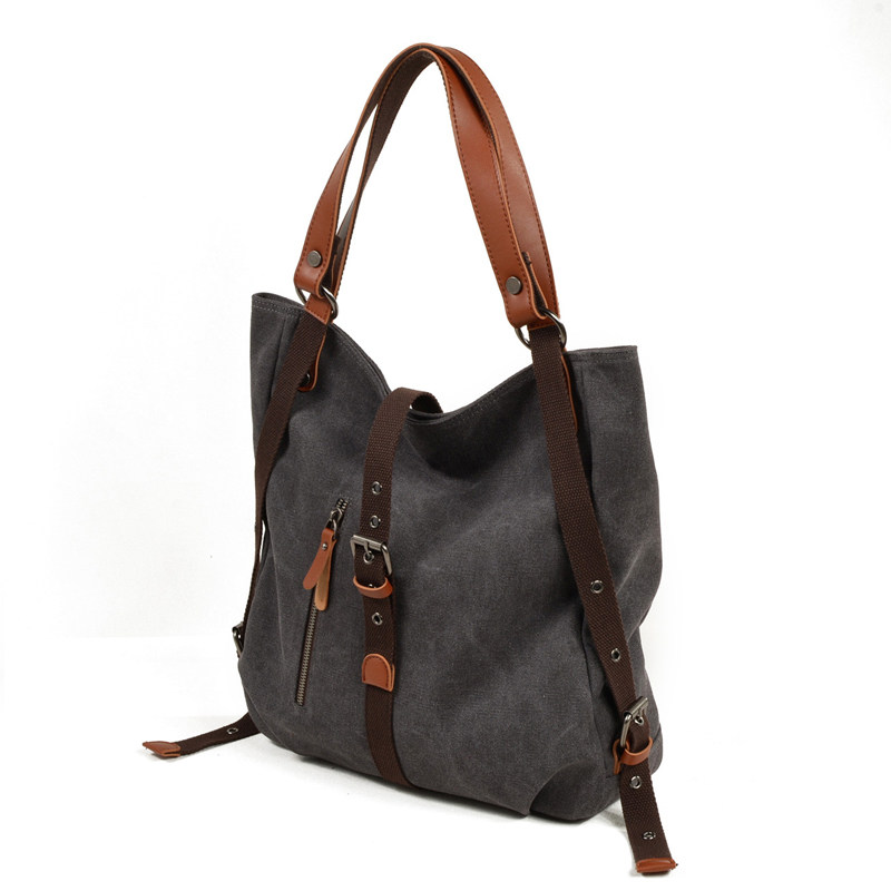 奇古西新款多功能双肩包休闲手提包复古帆布包背袋单肩包托特包女