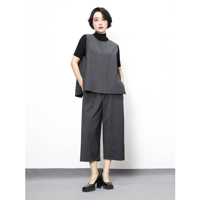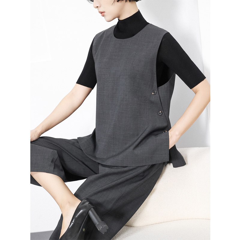 --------------------- KAKA巴黎秀款精纺羊毛圆领无袖纽扣后开叉社交正装宽松背心马甲女 【原售价】546元 【现售价】480元 【推荐理由】