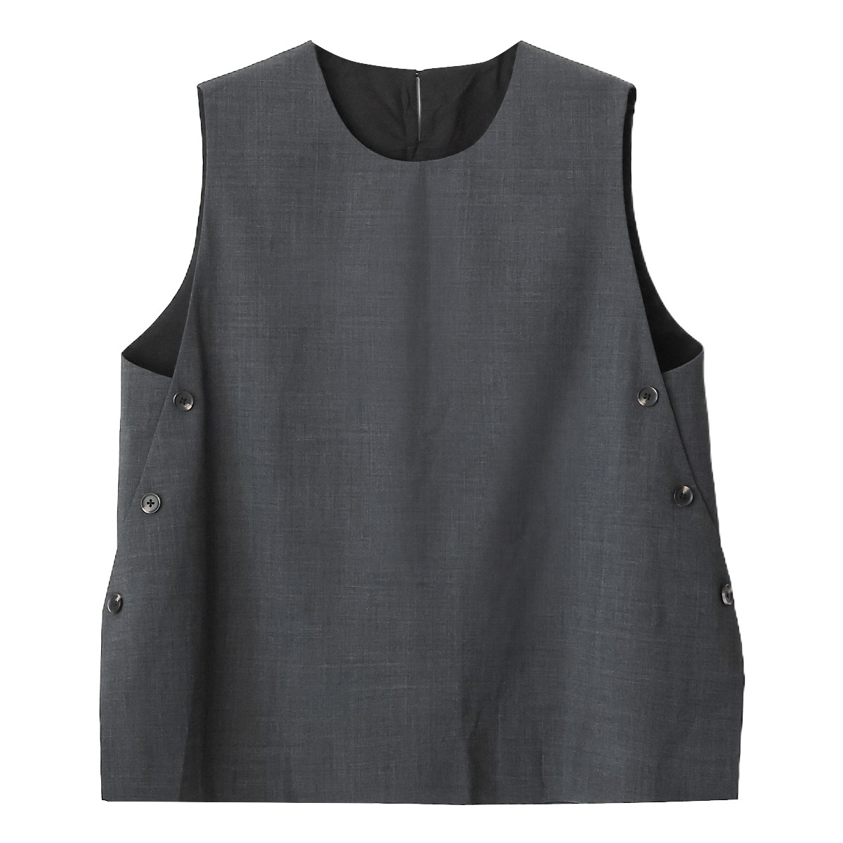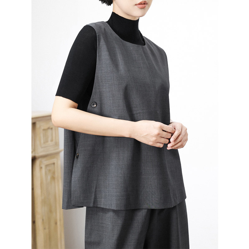 KAKA巴黎秀款精纺羊毛圆领无袖纽扣后开叉社交正装宽松背心马甲女