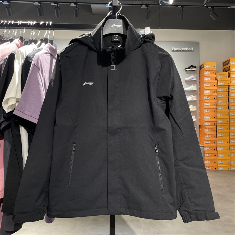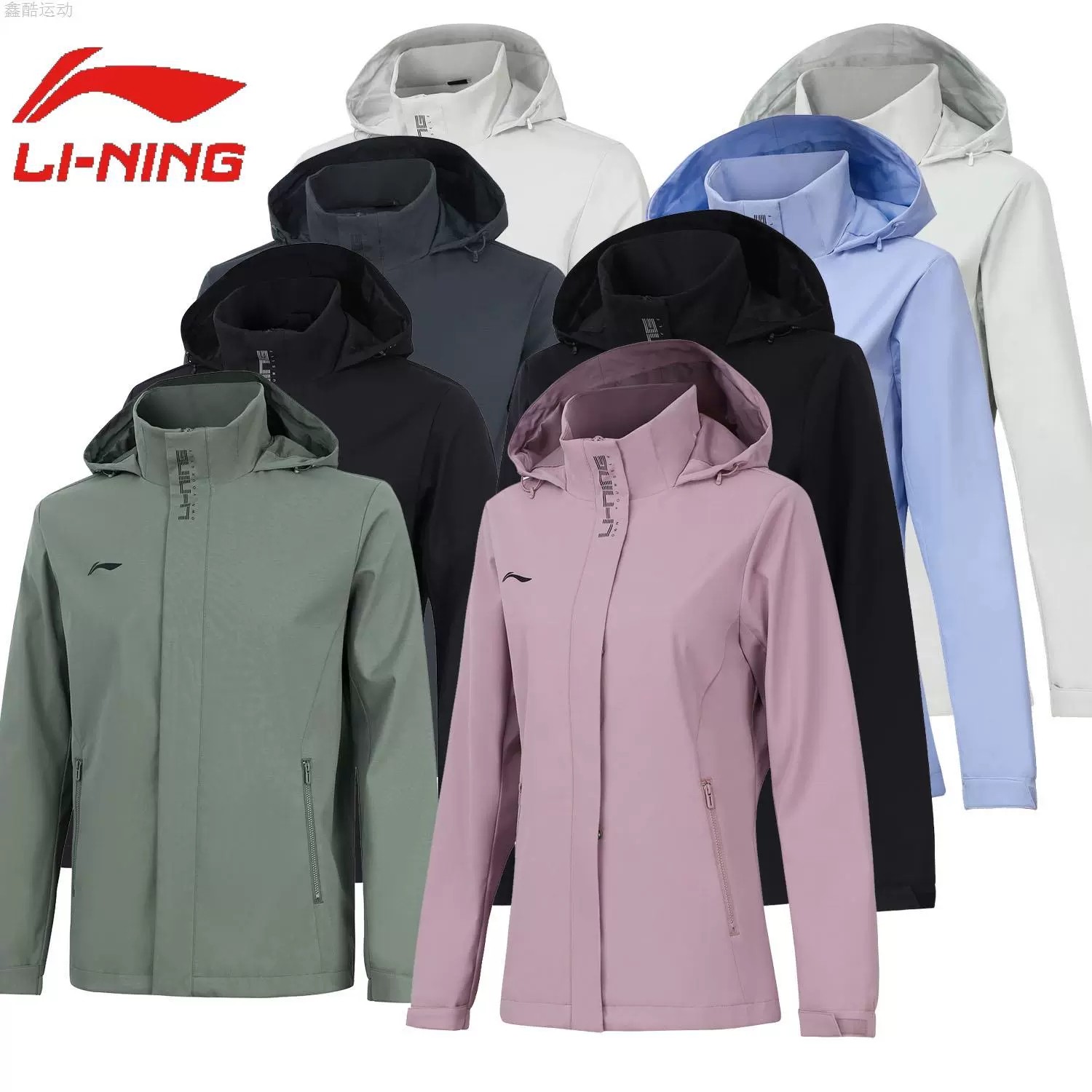 李宁运动风衣男女情侣装2024秋冬季连帽防风防波水双层外套冲锋衣