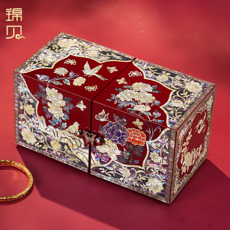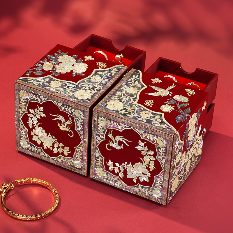 锦贝螺钿首饰盒结婚礼物新娘新人订婚首饰收纳盒手镯戒指项链盒