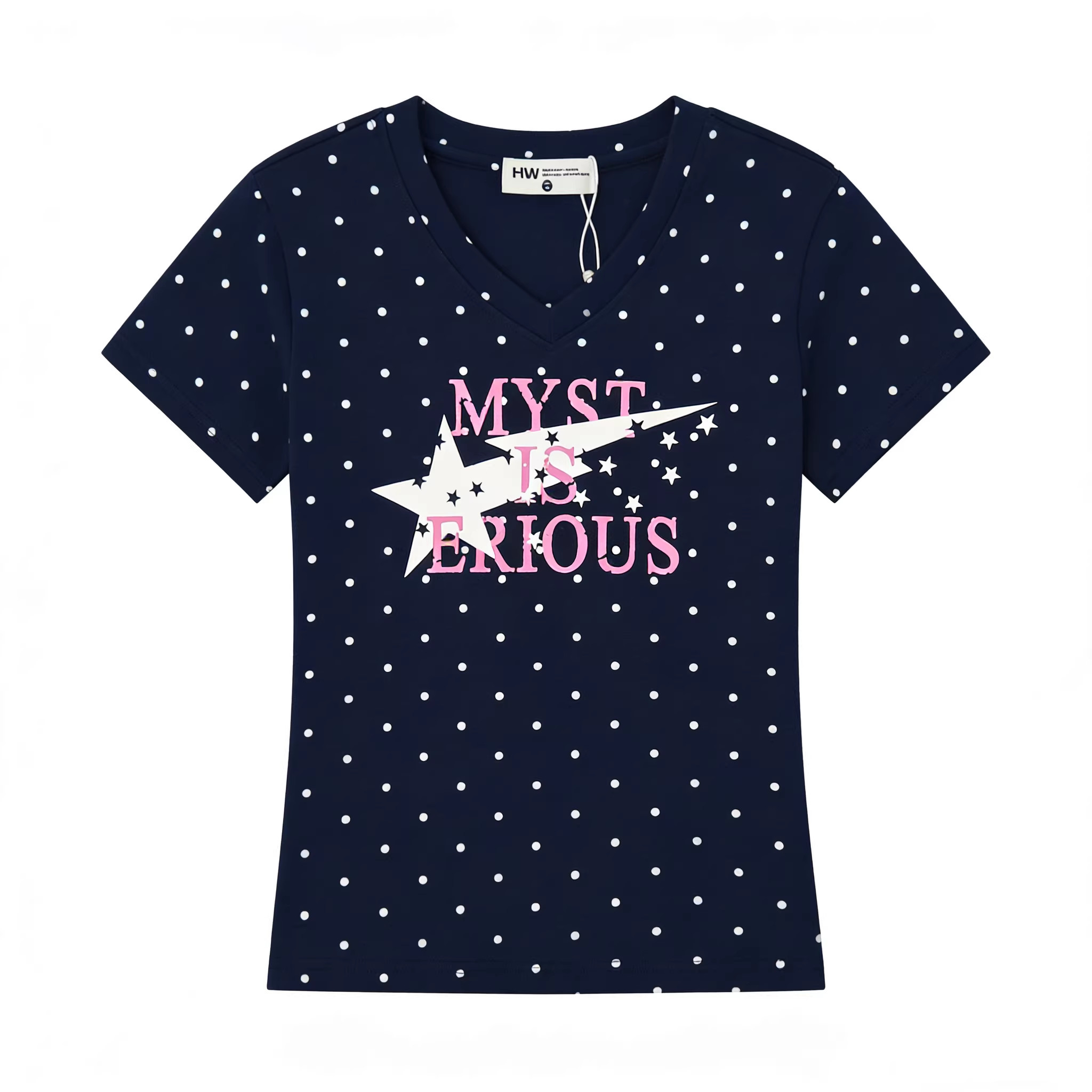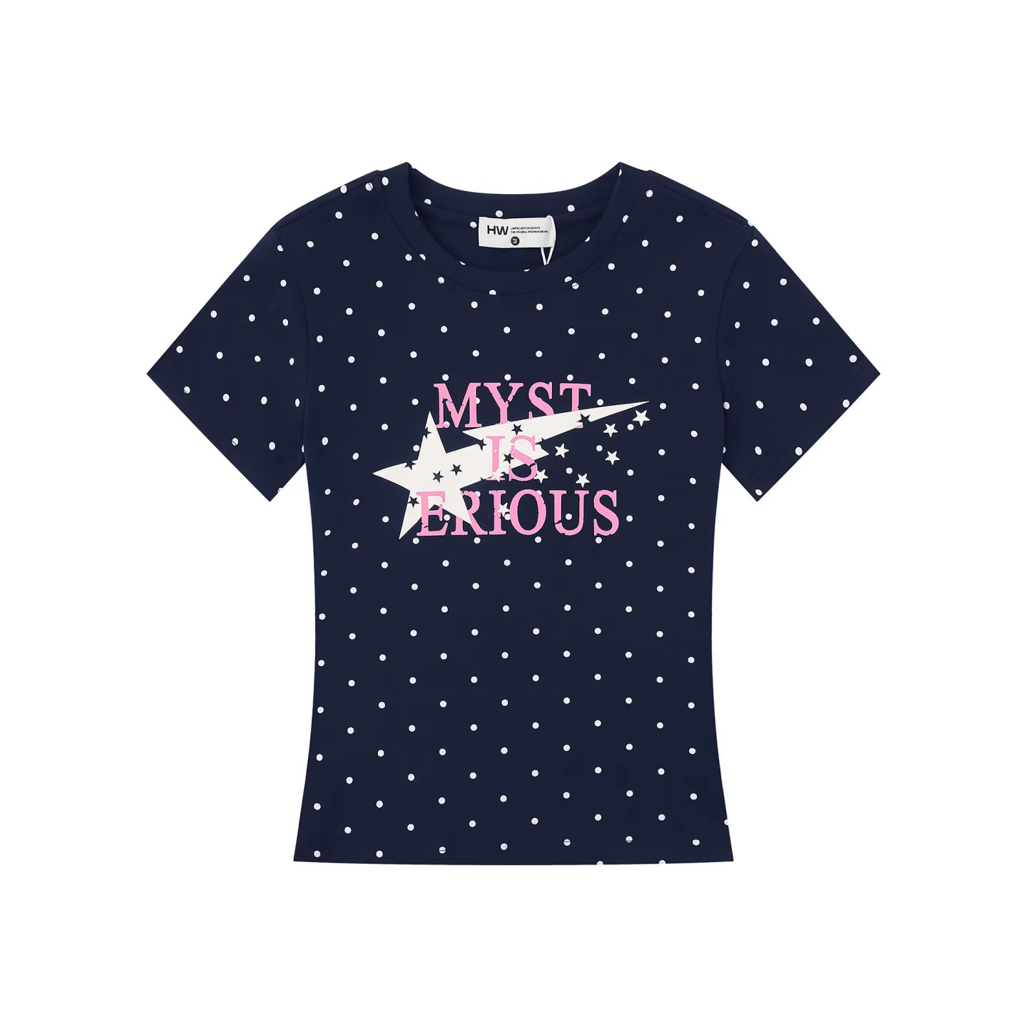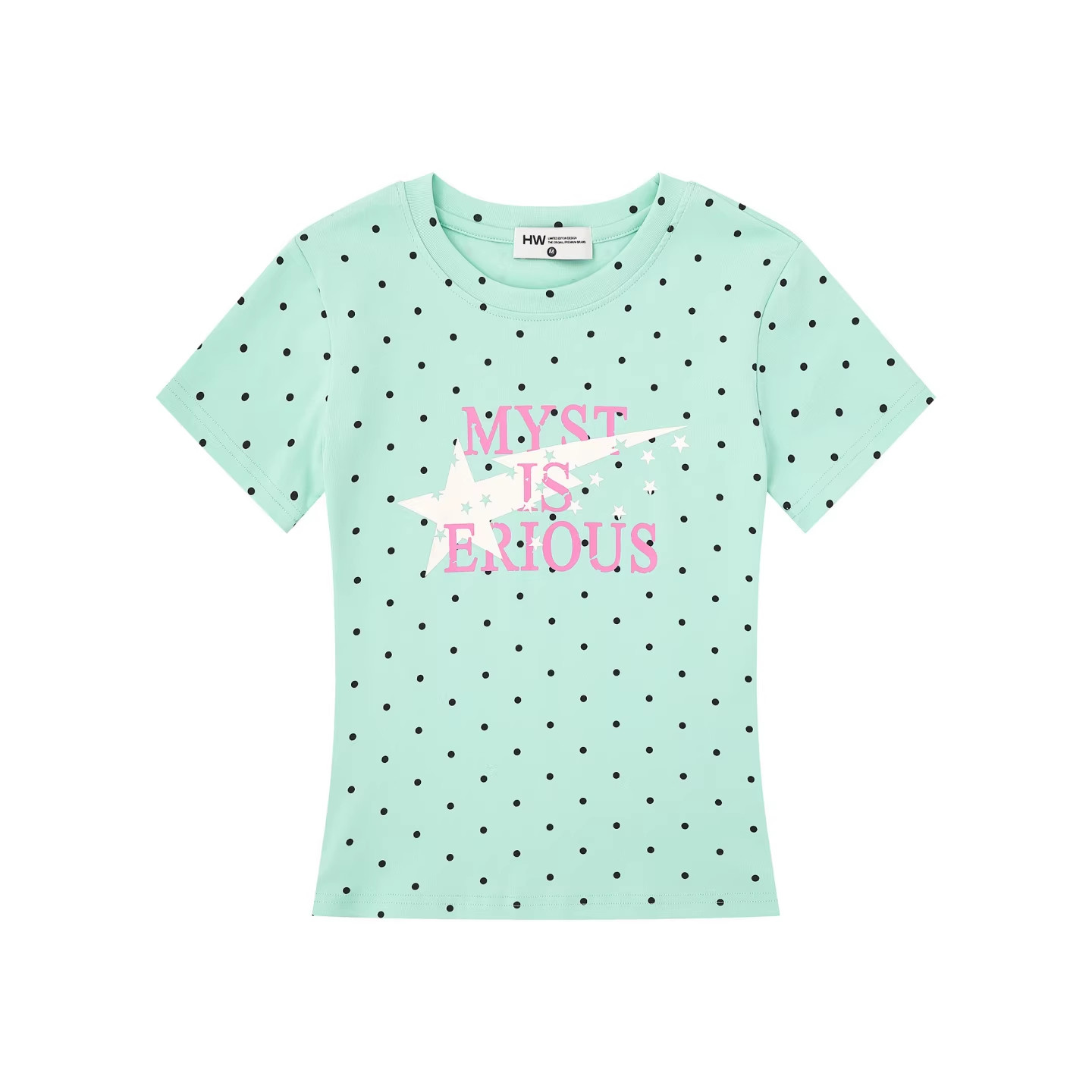 淘宝美式复古波点字母短袖T恤女修身显瘦夏季设计感甜美短款圆领上衣