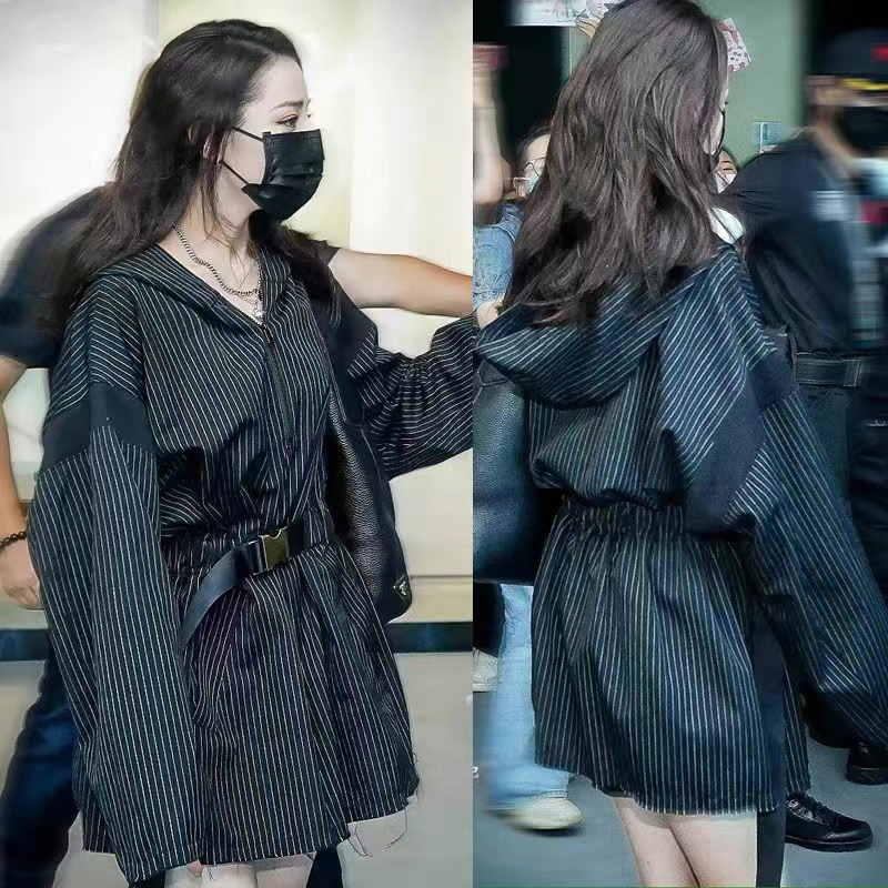 --------------------- 迪丽热巴同款衣服秋冬新款条纹腰带连衣裙高级感连帽外套宽松百搭 【原售价】328元 【现售价】196元 【推荐理由】