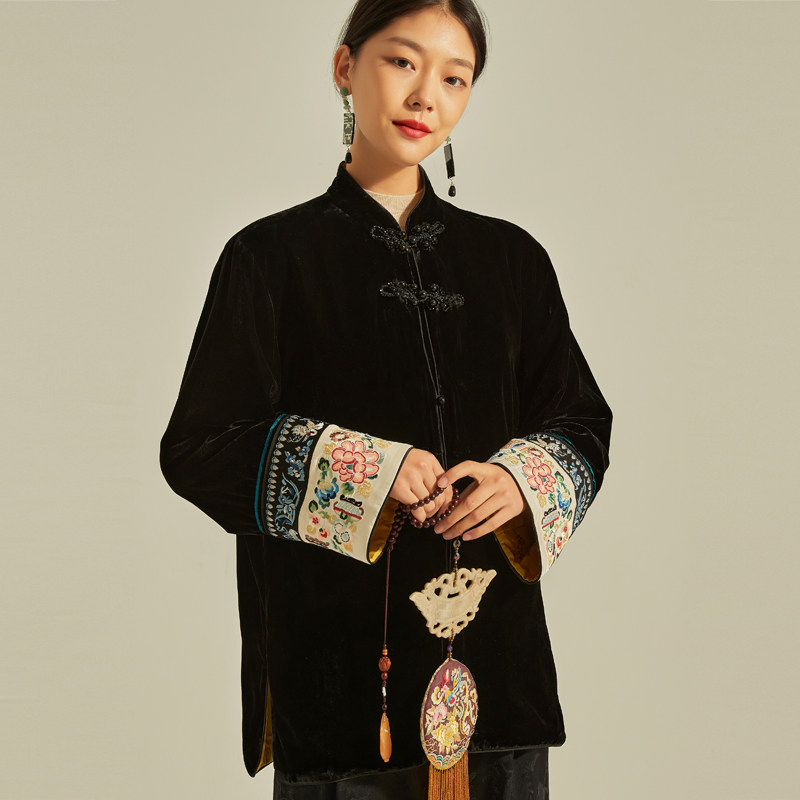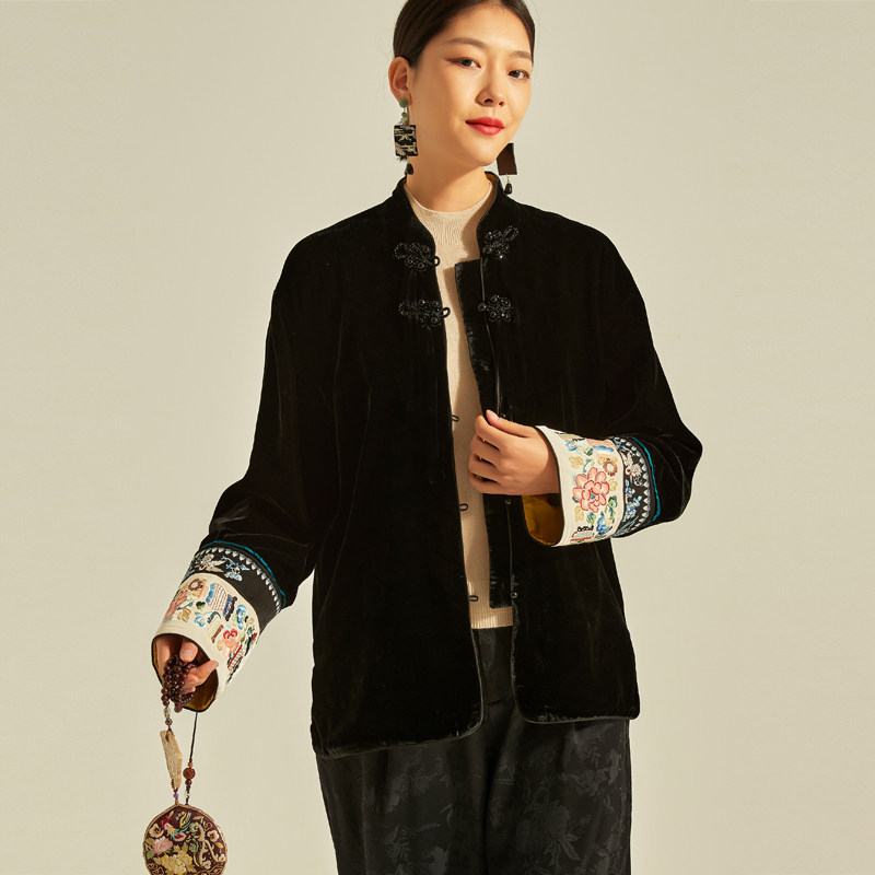拉贝碧 延禧新中式国风双面穿100桑蚕丝金丝绒刺绣国潮风唐装上衣