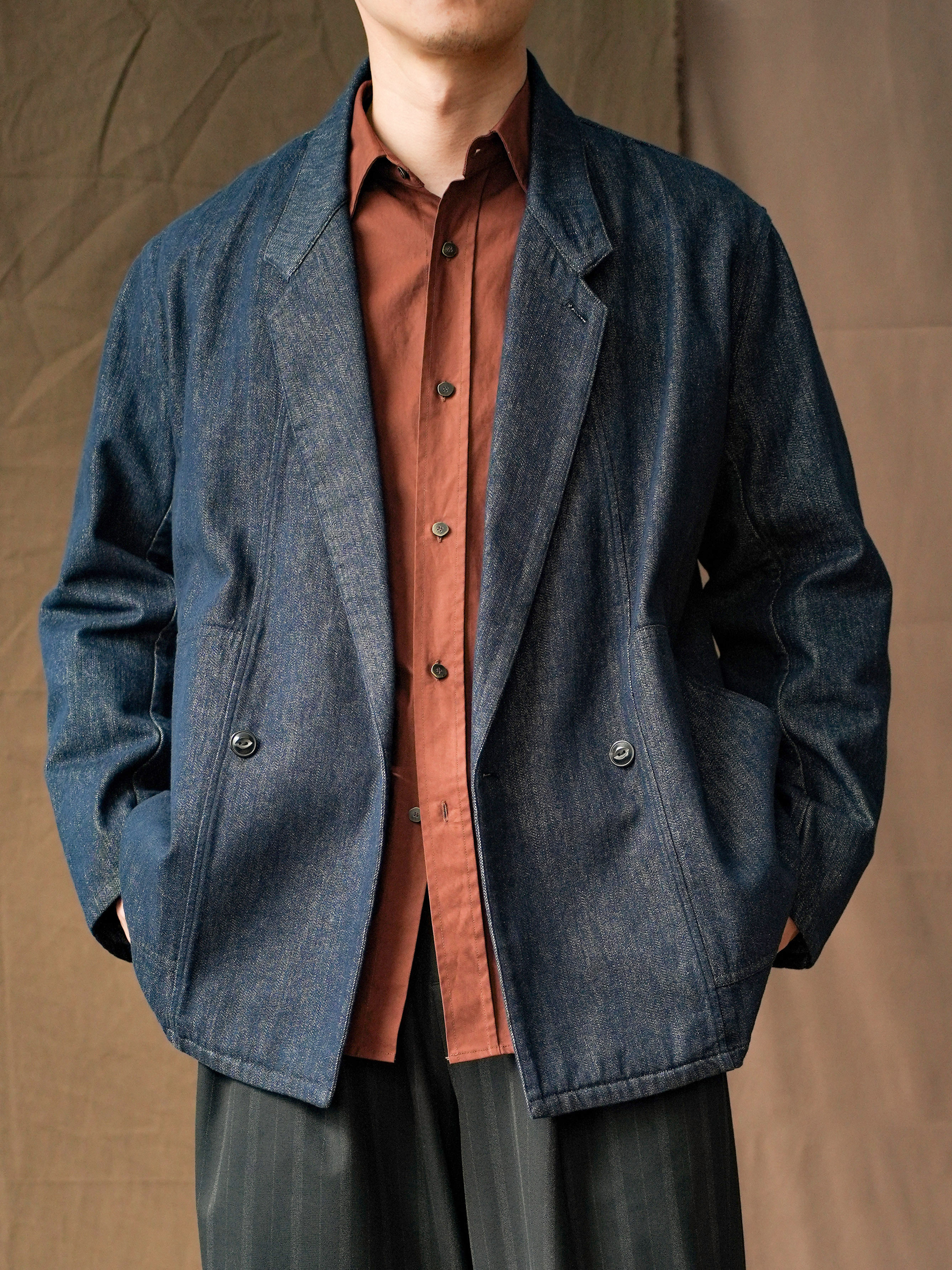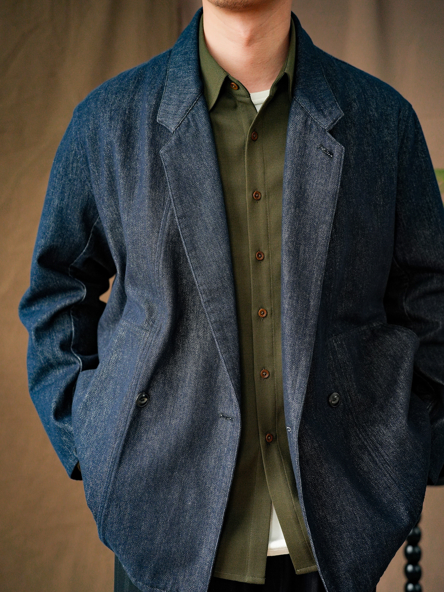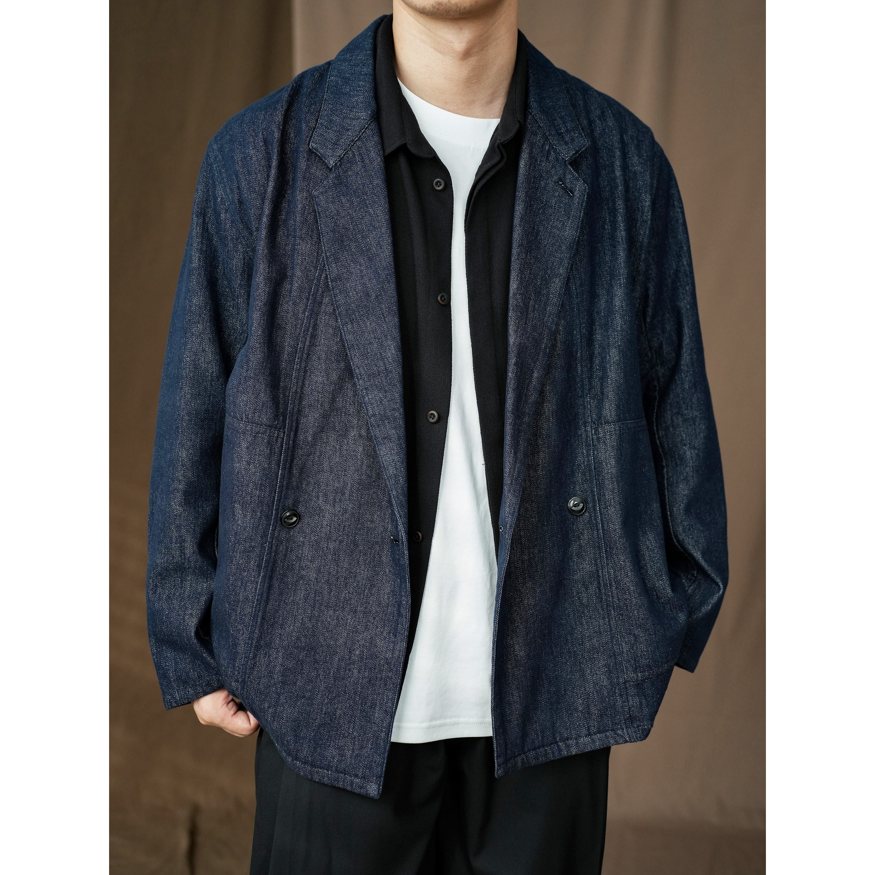 WATEREVER 春秋季双排扣牛仔西装休闲夹克 日系复古简约