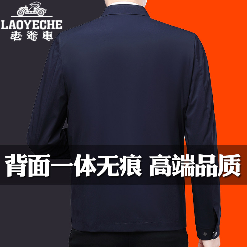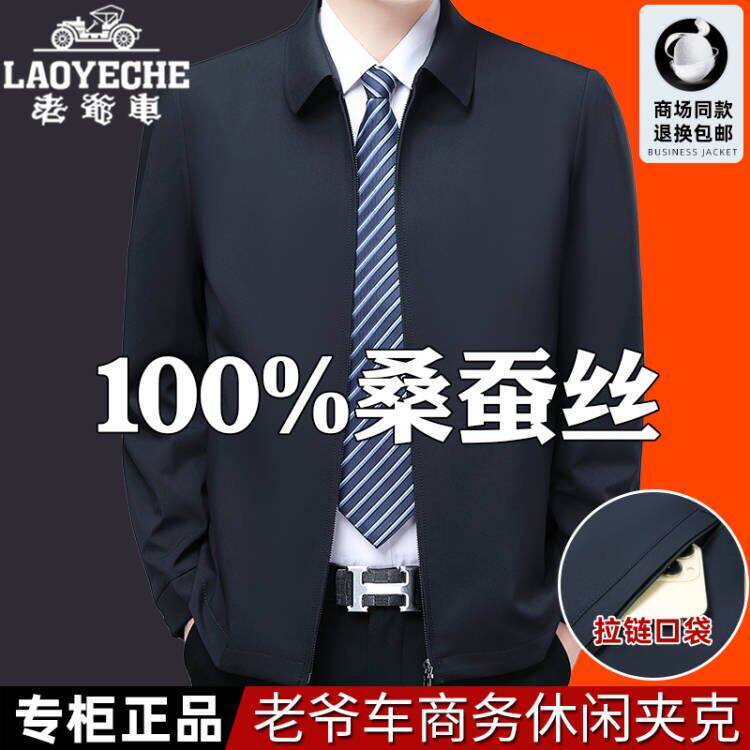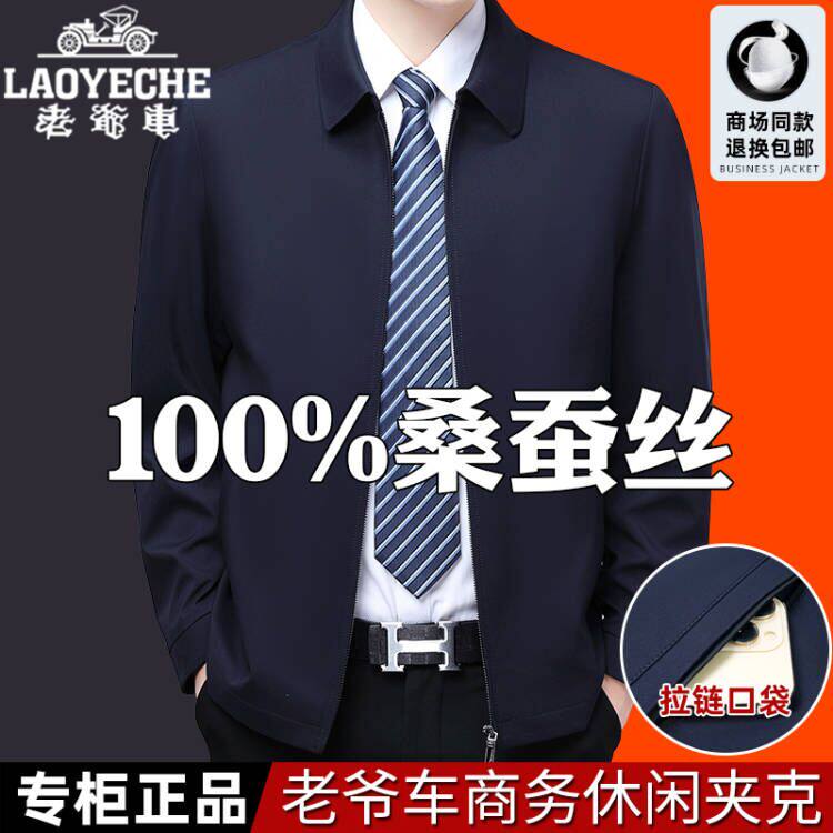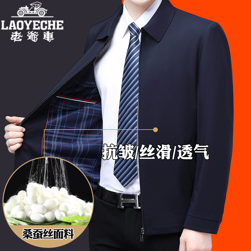 淘宝老爷车高档桑蚕丝翻领夹克男士外套春秋薄款中老年商务绅士爸爸装