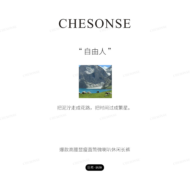 淘宝芝禾/CHESONSE【自由人】朗家 高腰显腿长直筒微喇叭裤长裤241110