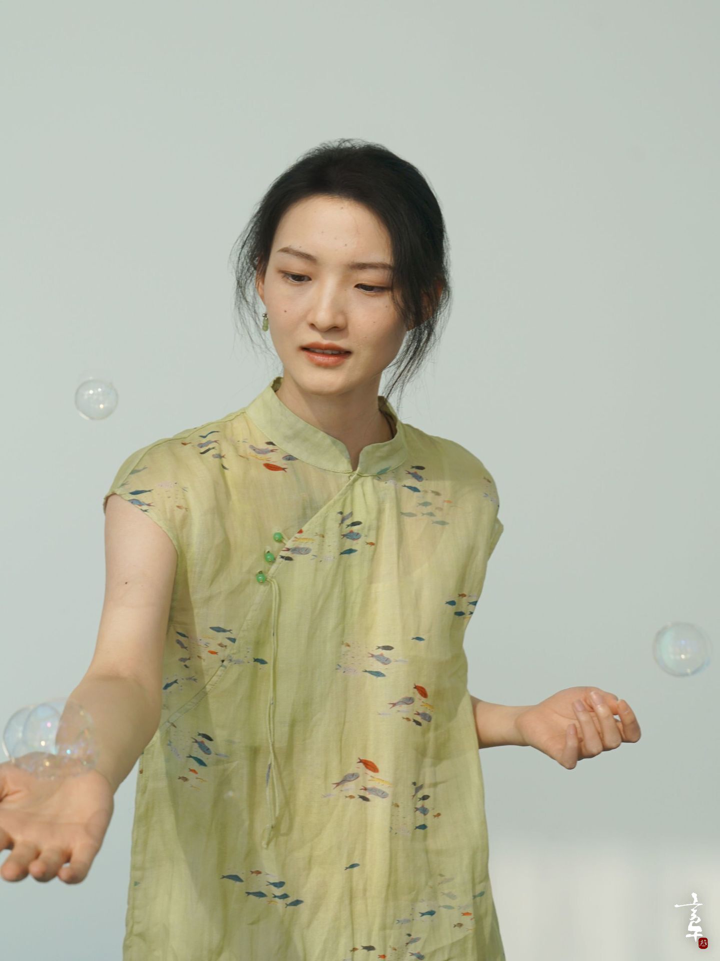言午葵原创国风中式田园碎花立领斜襟旗袍 禅意显瘦苎麻连身裙