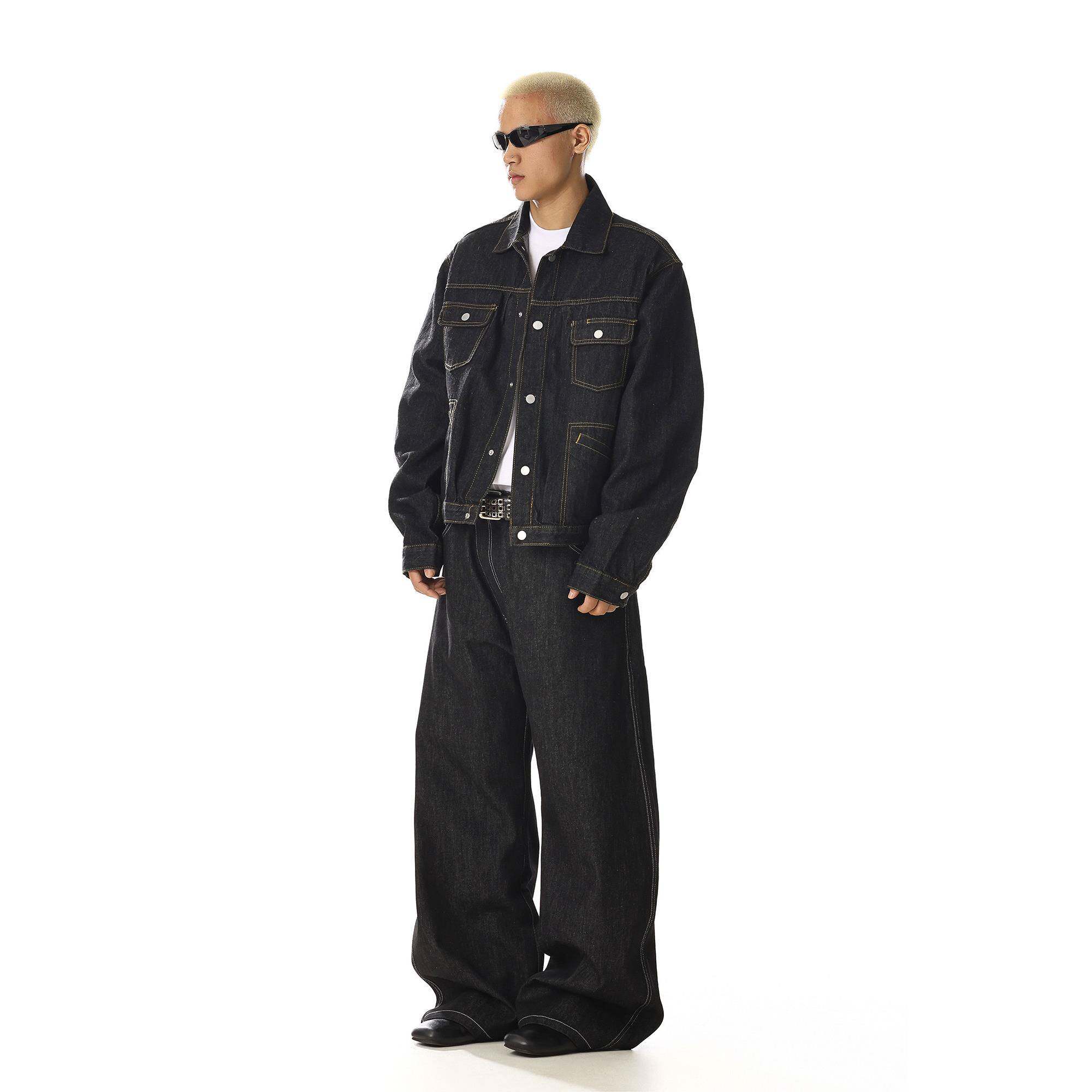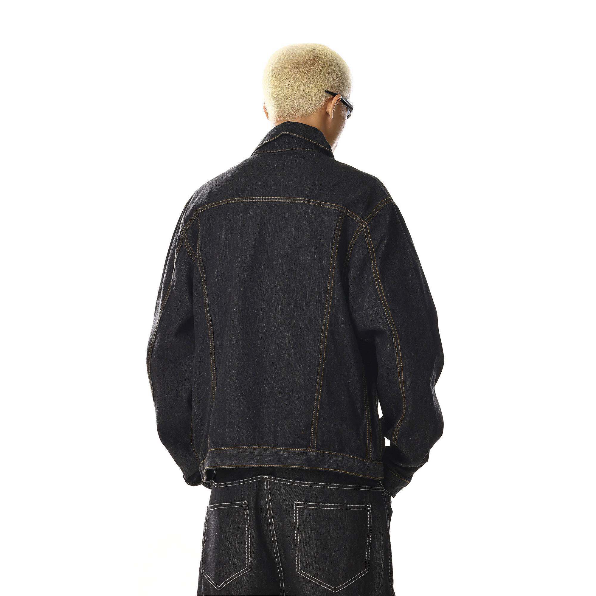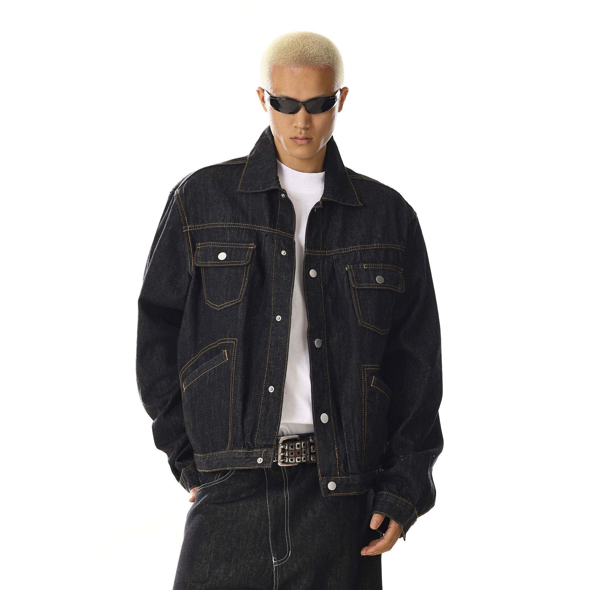 淘宝美式覆古设计感原色牛仔外套宽松百搭正肩口袋cleanfit夹克上衣男
