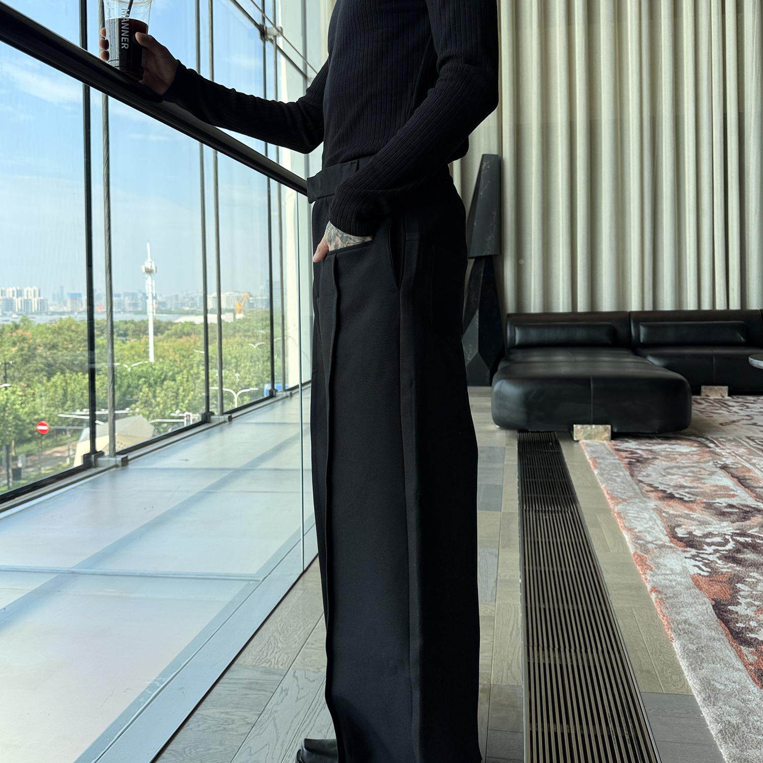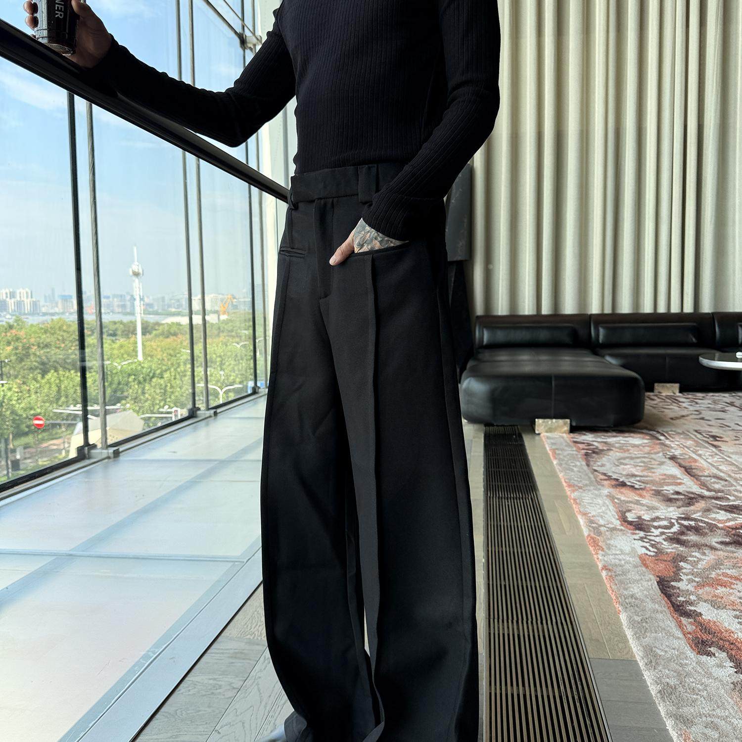 男女 垂坠感立体剪裁前插袋拼接宽松阔腿弯刀西裤潮牌直筒简约