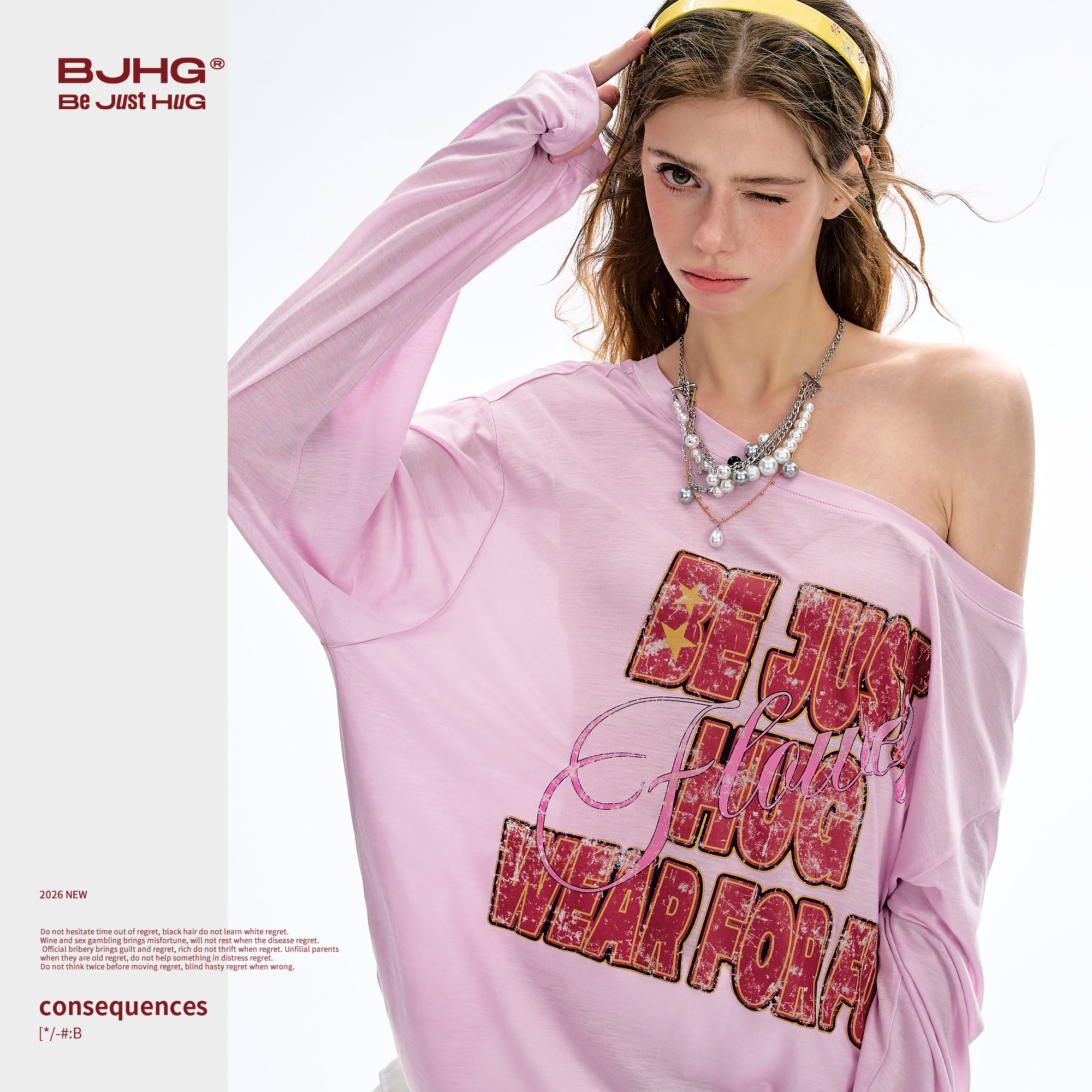 --------------------- BJHG不计后果 千禧风罩衫长袖T恤女夏季美式潮牌女装辣妹斜肩上衣 --------------------- --------------------- 【原价】119元 【券后价】89元