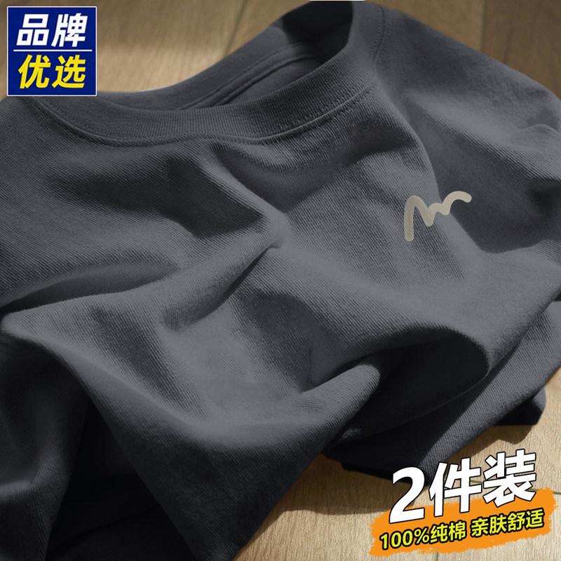 2件装品牌优选纯棉短袖t恤男2026新款夏季纯色圆领半袖宽松体恤男