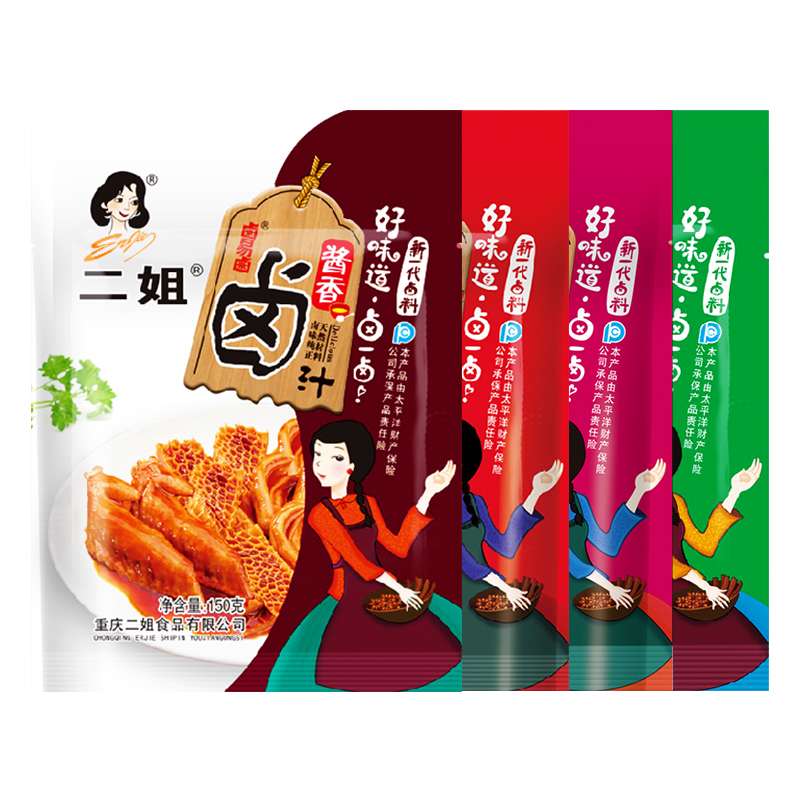 --------------------- 重庆二姐卤汁香辣特辣酱香五香150g装袋卤鸡鸭鹅老卤水卤鸡爪卤料 【原售价】5.99元 【现售价】5.99元 【推荐理由】