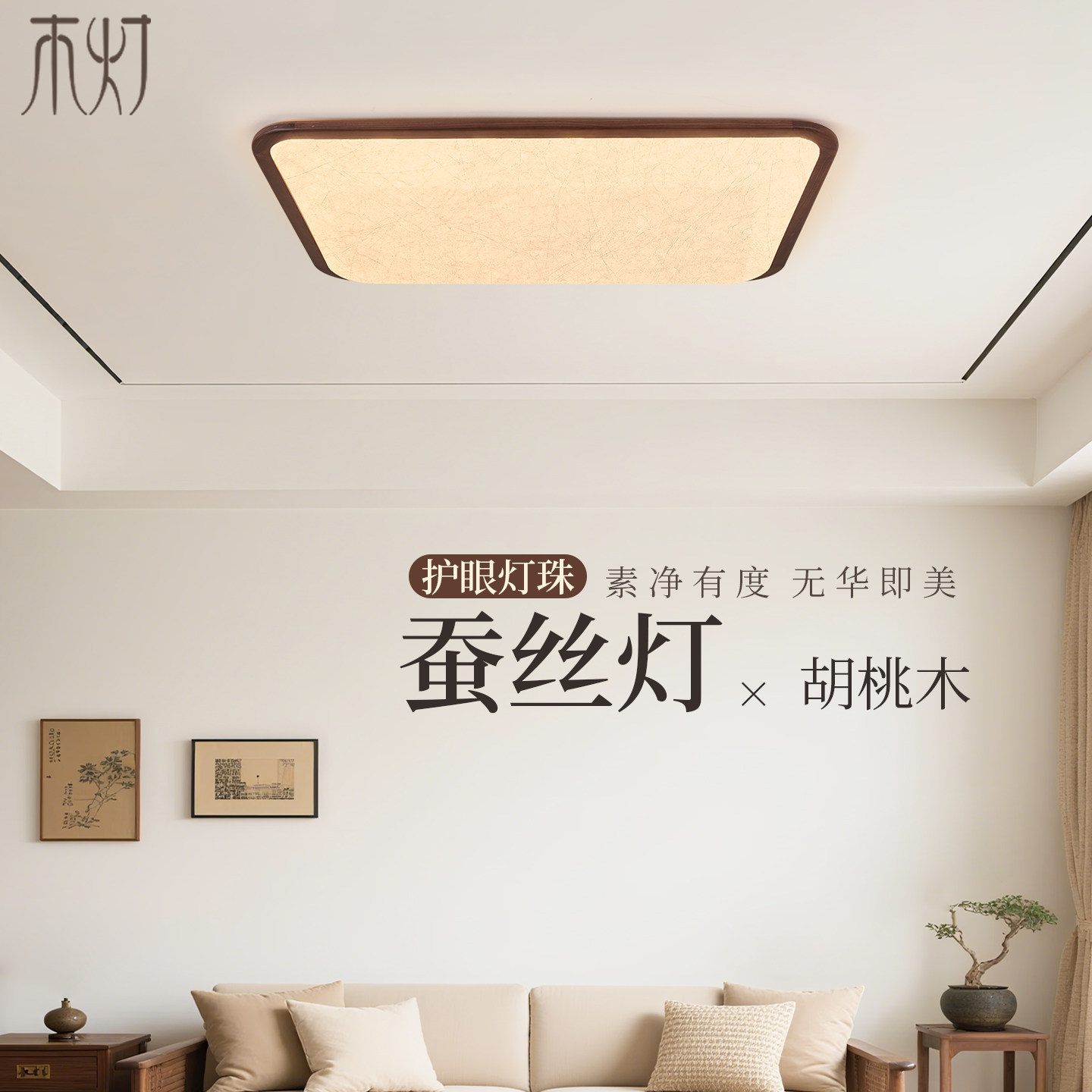 --------------------- 简约吸顶灯胡桃木蚕丝宋式美学客厅大灯新中式中古风卧室餐厅顶灯 【原售价】589元 【现售价】459元 【推荐理由】