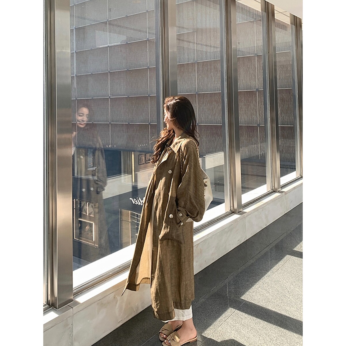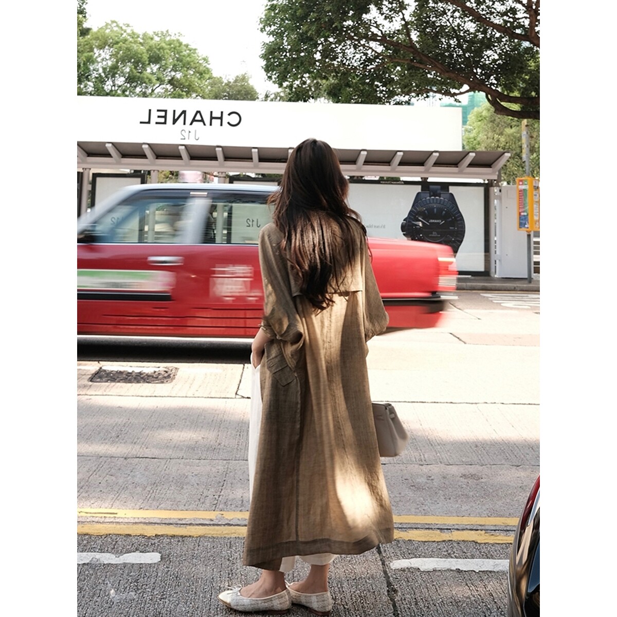 日本offcat2025新款巨好看翻领防晒风衣中长款小个子宽松慵懒亚麻