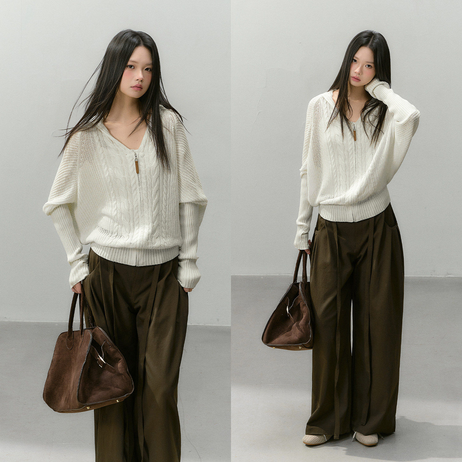 CyNi【疏影捕光】天丝亚麻立体编织蝙蝠袖针织开衫外套透气舒适