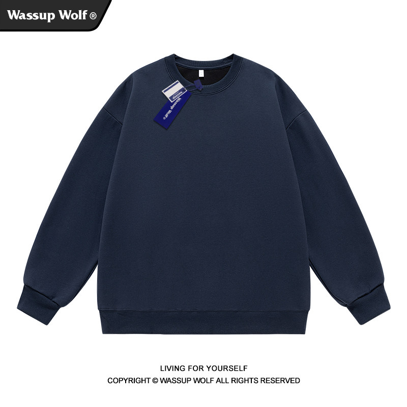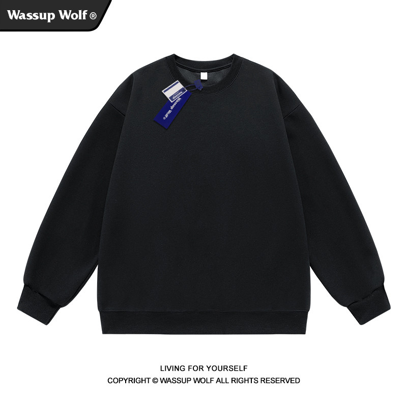Wassup Wolf基础款圆领卫衣男女简约上衣情侣纯色宽松纯棉打底衫