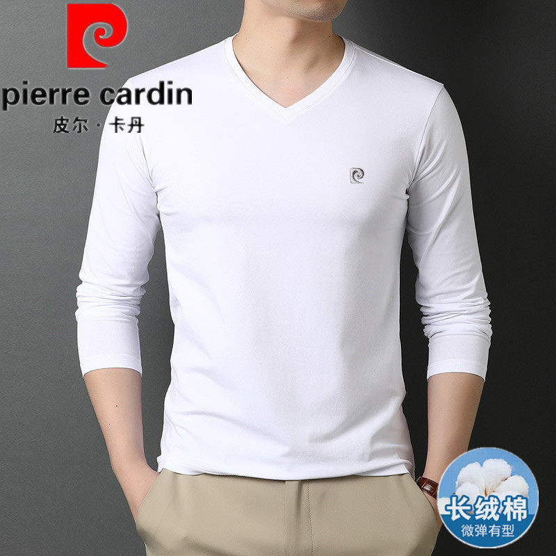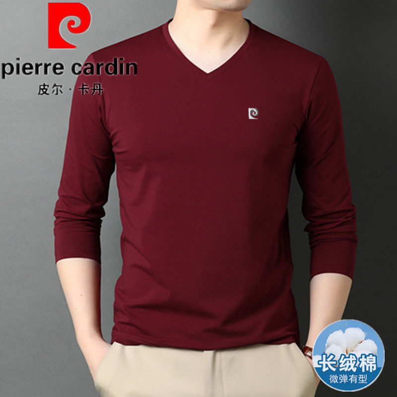 --------------------- 皮尔卡丹长袖T恤男V领黑色休闲纯棉打底衫春秋款吸汗透气中年上衣 【原售价】288元 【现售价】77.4元 【推荐理由】