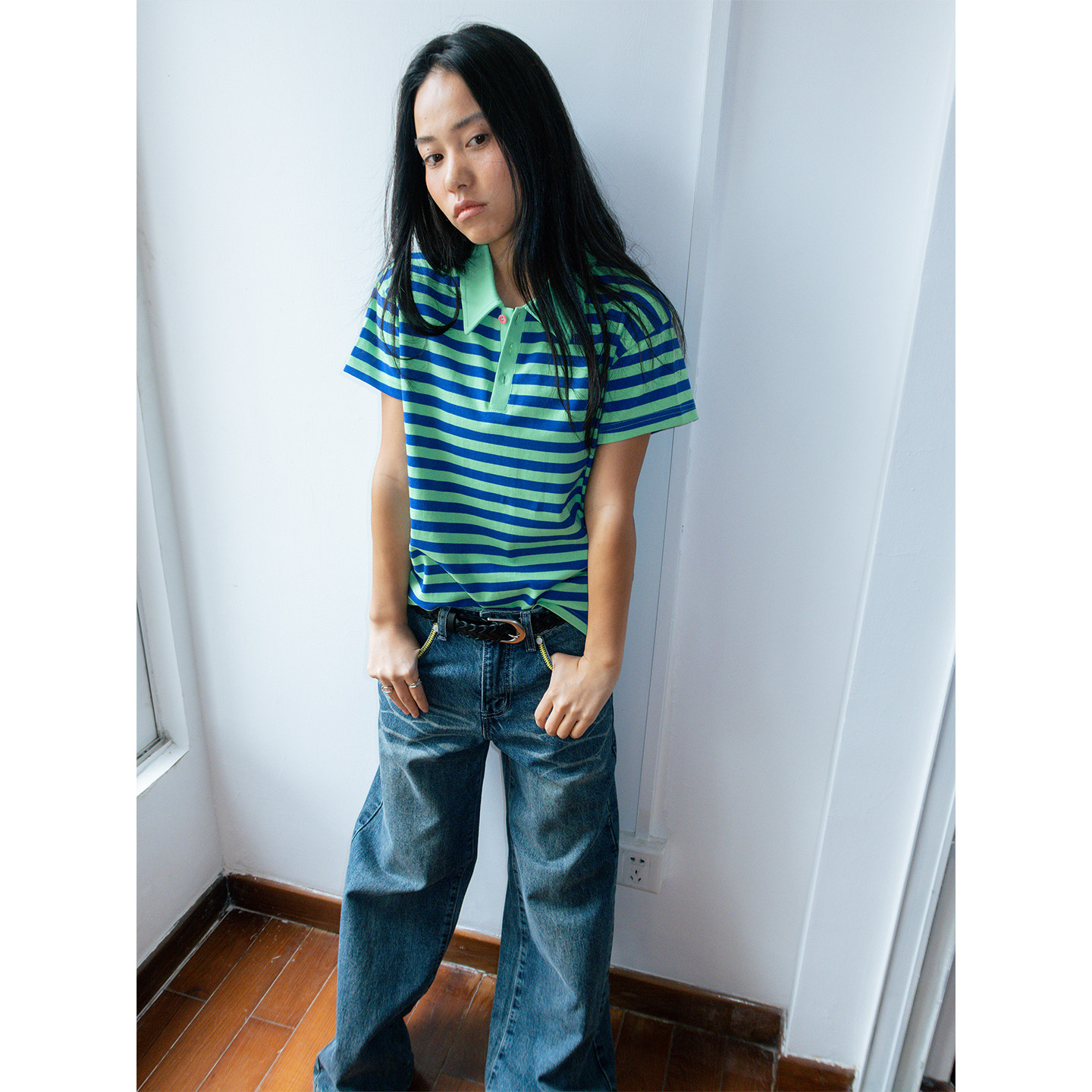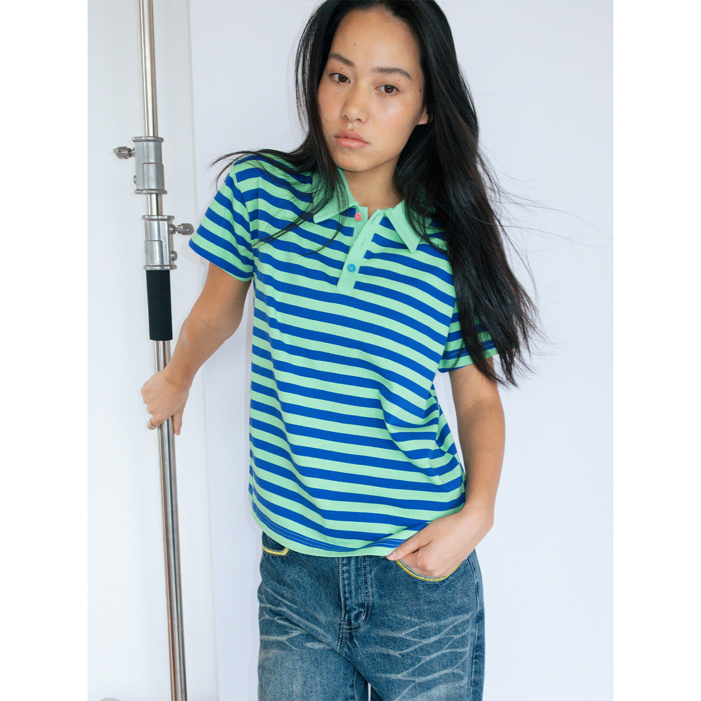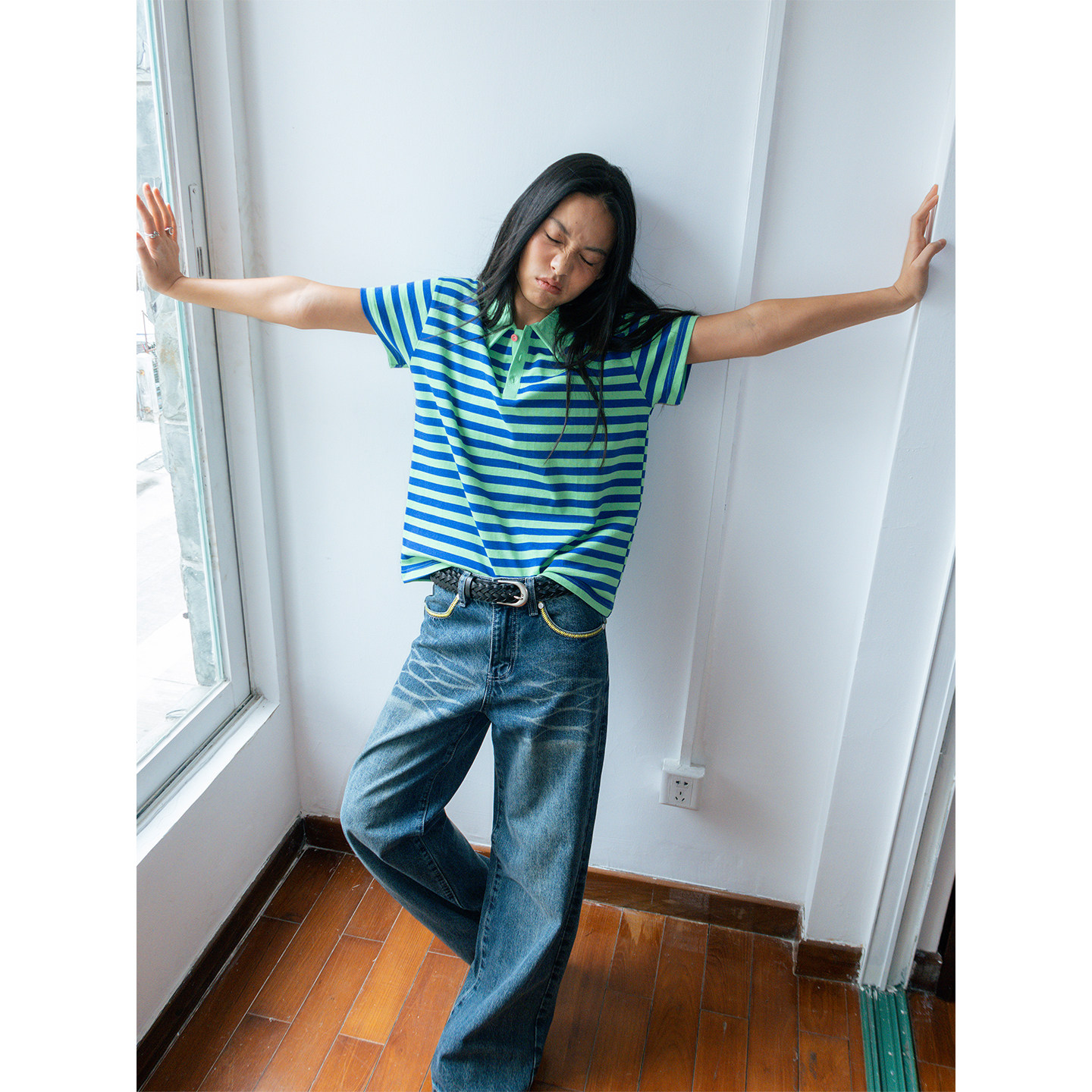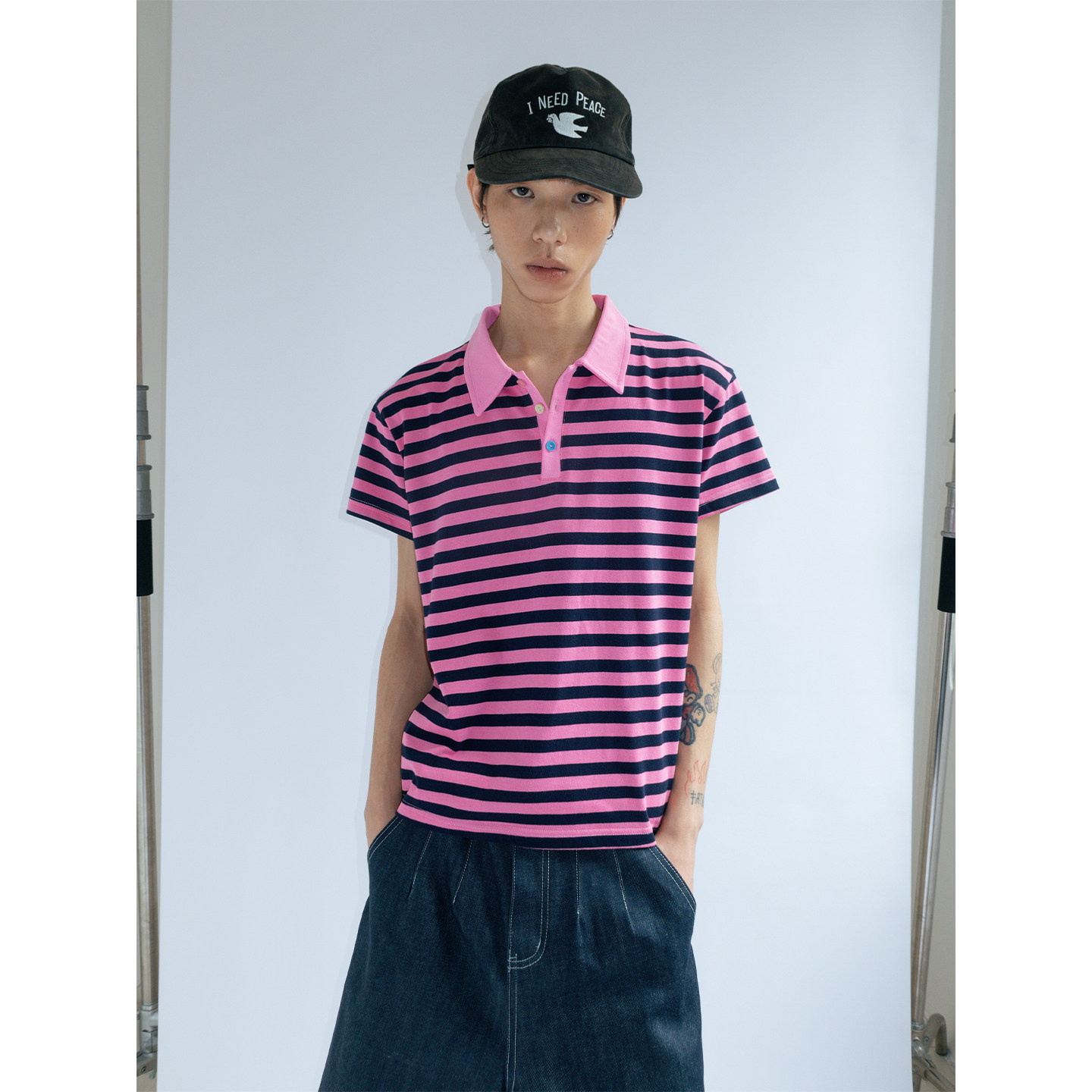 --------------------- FUNKYFUN 绒毛撞色扣条纹翻领POLO衫美式复古正肩短袖T恤上衣 【原售价】105元 【现售价】83.1元 【推荐理由】