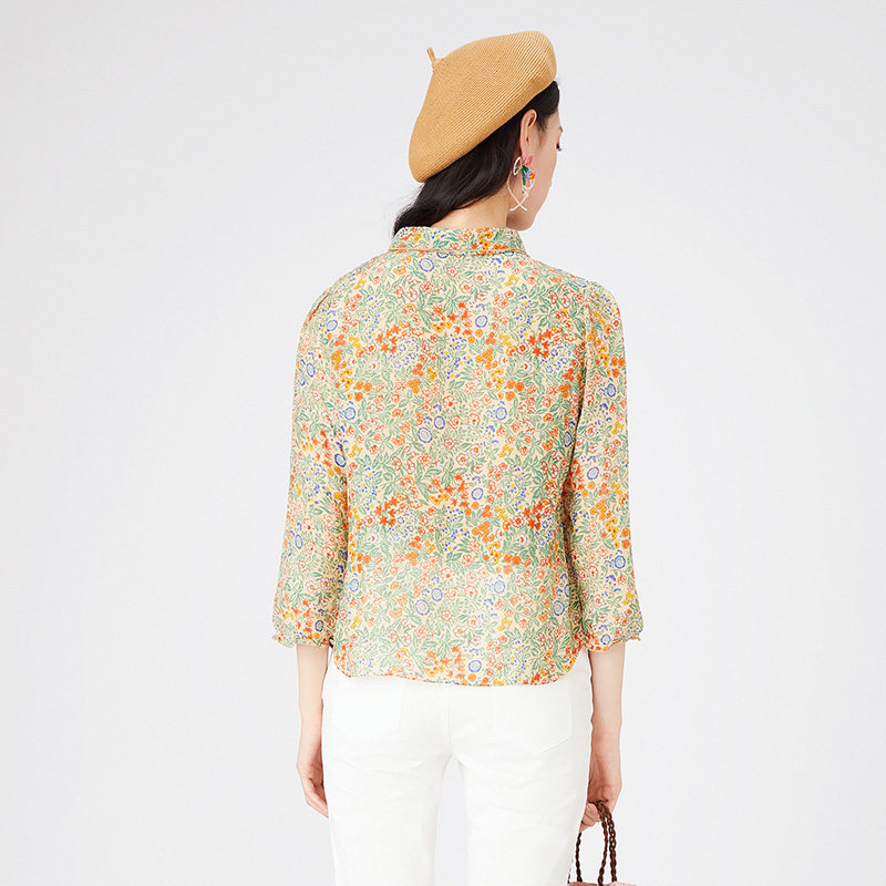 渔女装衬衣新款女春夏翻领碎印花真丝桑蚕丝休闲上衣FGGA2203