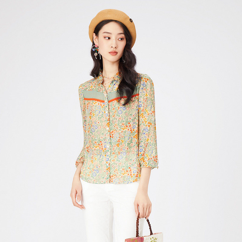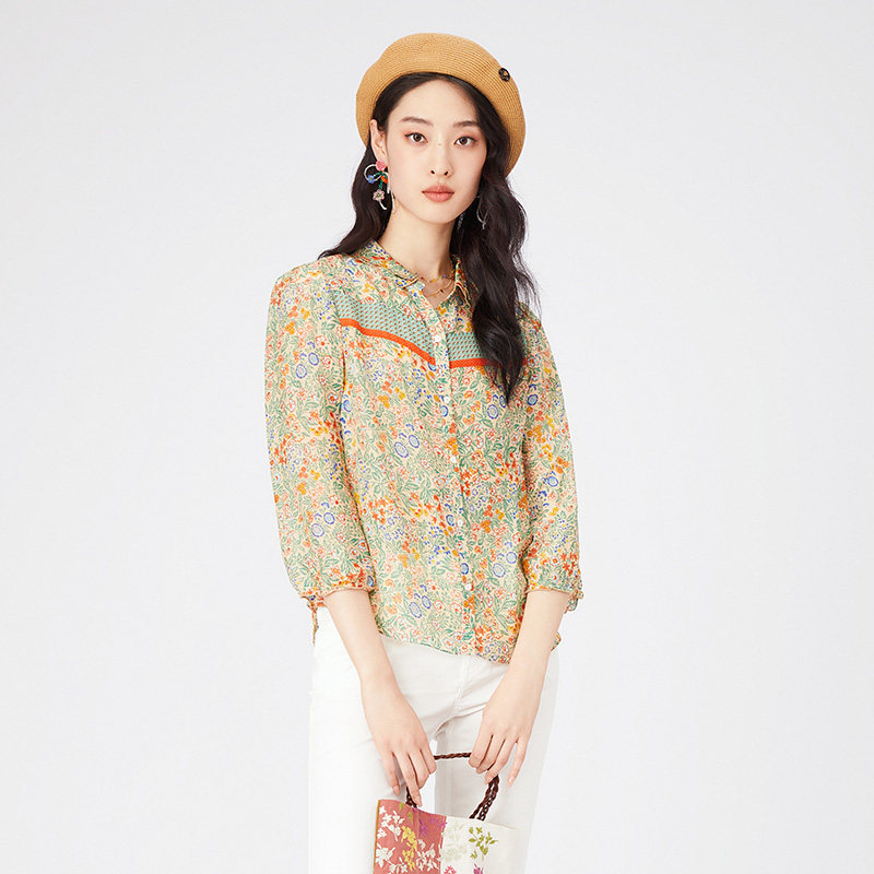 --------------------- 渔女装衬衣新款女春夏翻领碎印花真丝桑蚕丝休闲上衣FGGA2203 --------------------- --------------------- 【原价】1658元 【券后价】358元