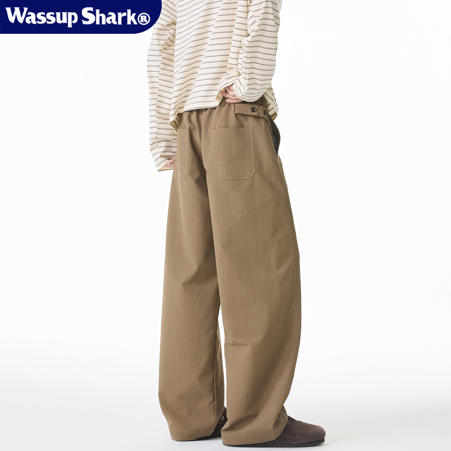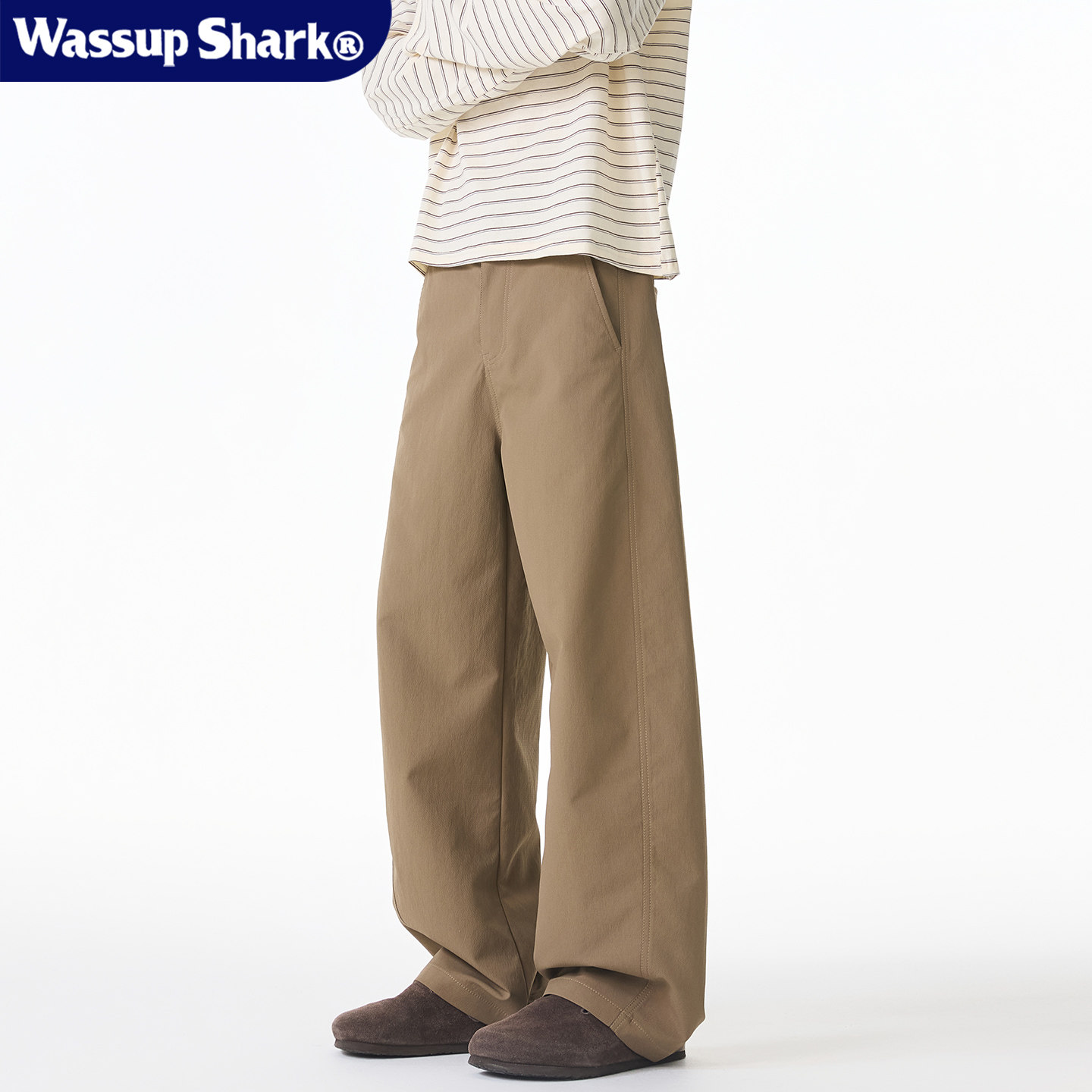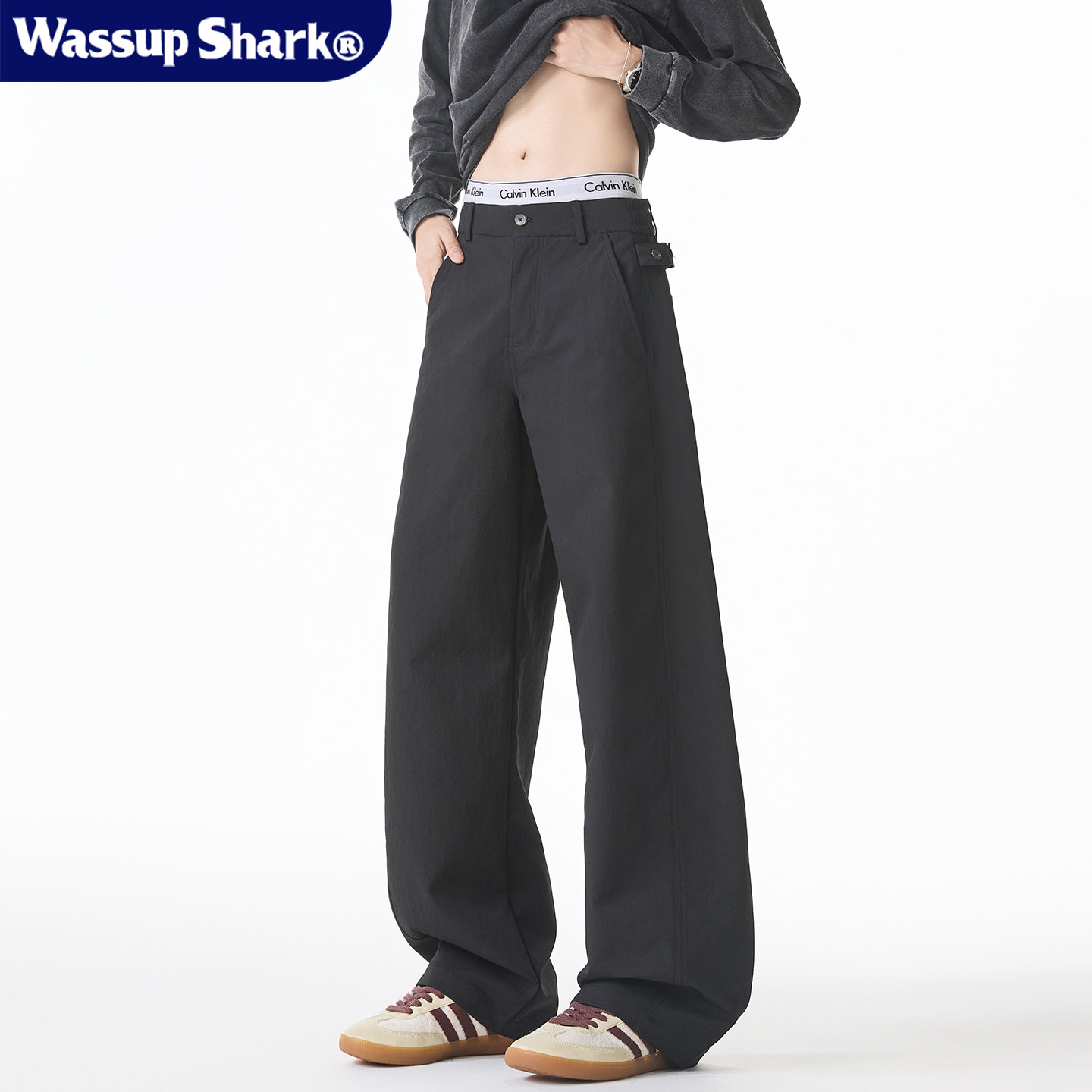Wassup Shark美式纯色休闲弯刀裤男秋季简约百搭阔腿宽松直筒长裤