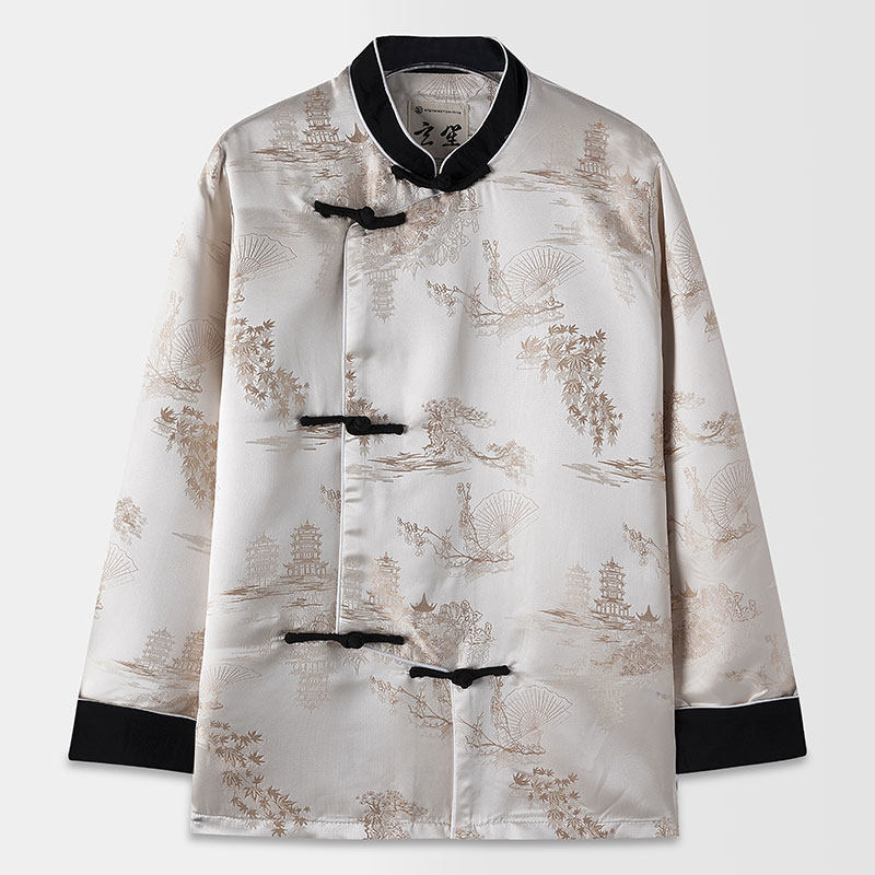 --------------------- 秋季唐装男中式改良手工盘扣提花外套男复古国潮立领中国风男装 【原售价】638元 【现售价】297元 【推荐理由】