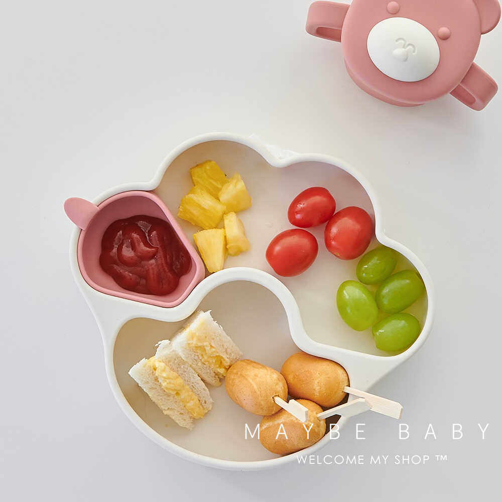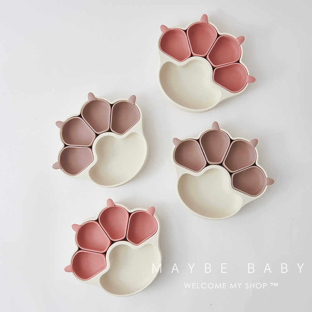 韩国ins宝宝吃饭辅食碗可爱猫爪硅胶餐盘儿童可拆卸分格吸盘餐具