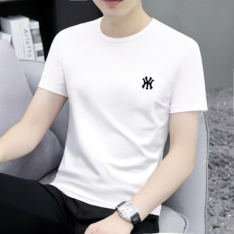 2026夏季新款白色短袖T恤男圆领潮牌印花高端男士冰丝棉半袖体恤